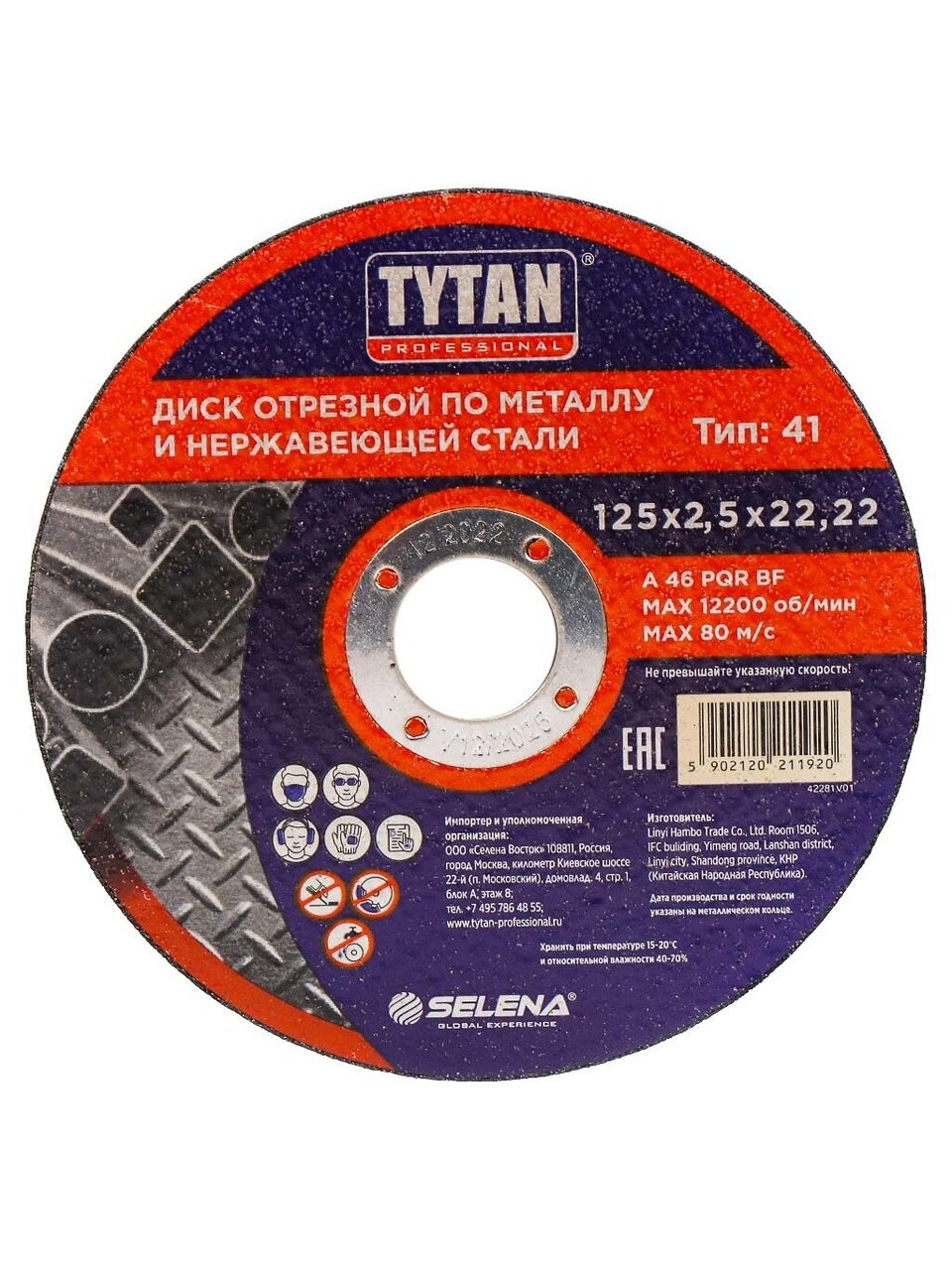 Вы можете приобрести «Диск отрезной по металлу и нержавеющей стали, Tytan, Professional, диаметр 125х2.5 мм, посадочный диаметр 22.22 мм, 11920» и другие товары в нашем интернет-магазине в Россоши по низким ценам и с бесплатным самовывозом.