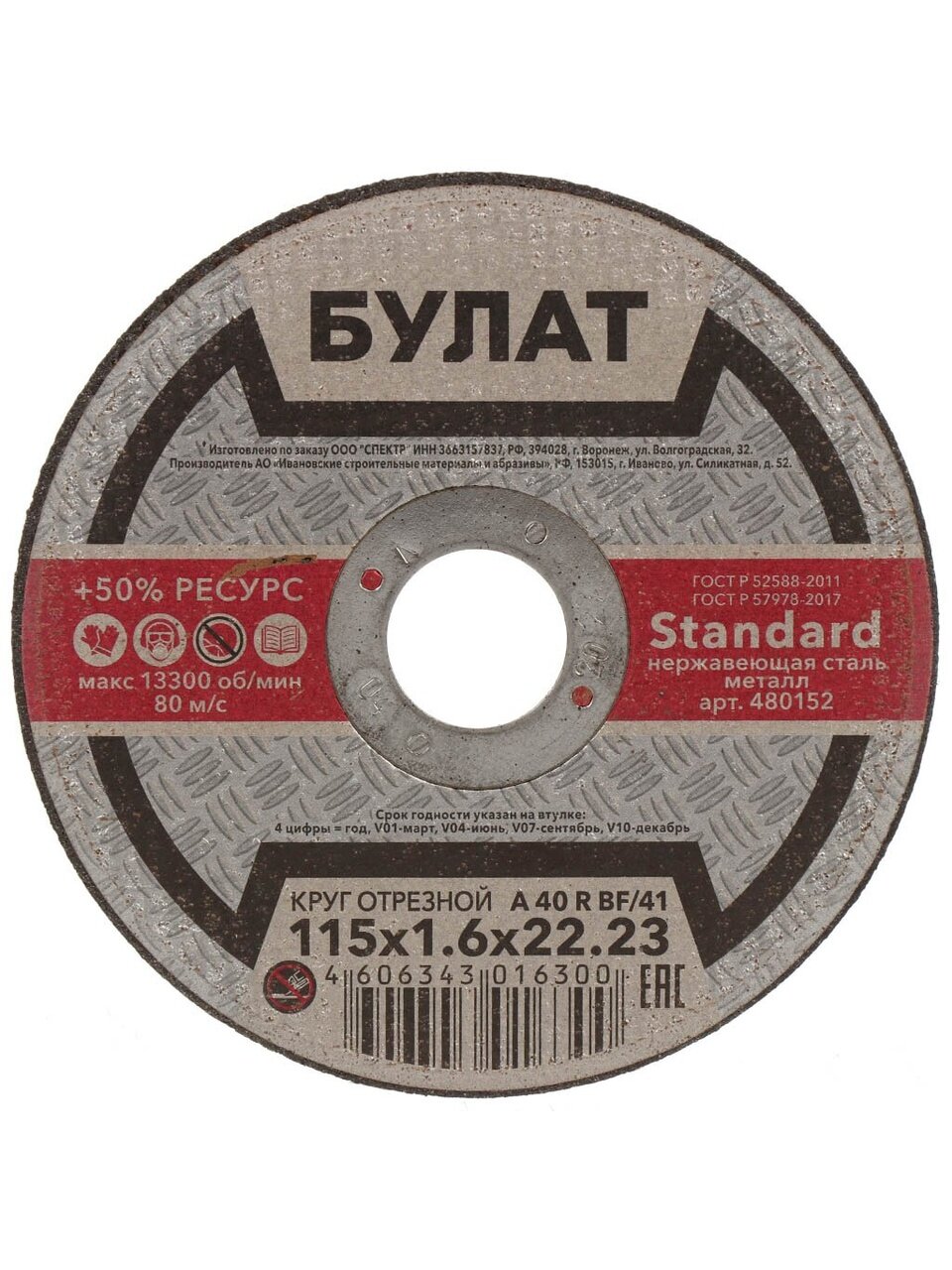 Вы можете приобрести «Круг отрезной по металлу, Булат, BF, диаметр 115х1.6 мм, посадочный диаметр 22.23 мм, зернистость A60, тип 41, R 80 м/с» и другие товары в нашем интернет-магазине в Курске по низким ценам и с бесплатным самовывозом.