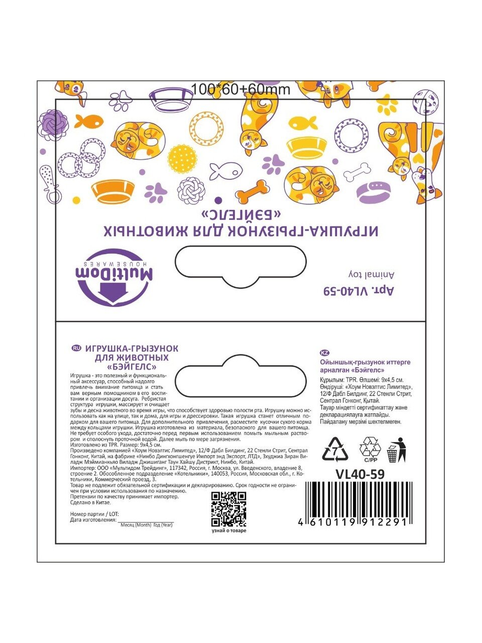 Игрушка-грызунок для животных, MultiDom, Бэйгелс, 9х4.5 см, VL40-59