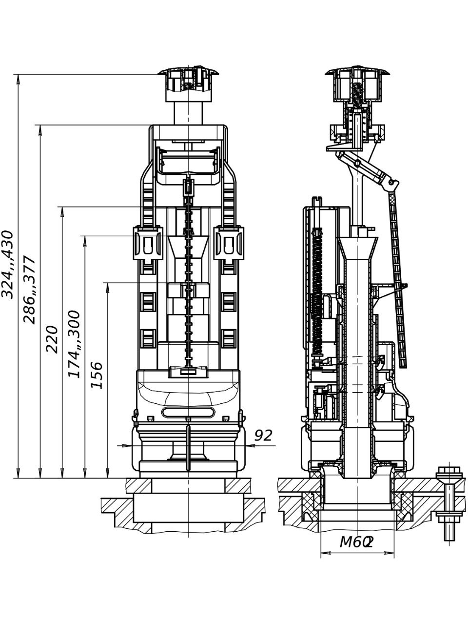 Универсальный сливной клапан СБ2 кнопочный с двумя режимами слива. Для слива всего полезного объема бачка необходимо нажать на большую кнопку смыва, для слива половины объема-на малую кнопку. Сливной клапан СБ2 предназначен для использования в смывных бачках высотой от 350 до 430 мм и с диаметром отверстия в крышке бачка 40 мм.