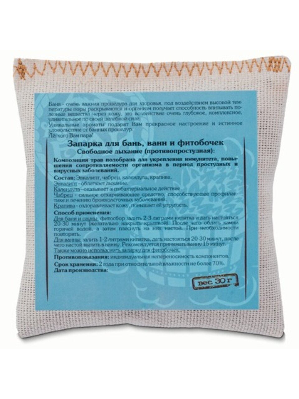 Фитозапарка для бани Алтын Бай, Свободное дыхание — это идеальное решение для тех, кто заботится о своем здоровье и хочет наслаждаться банными процедурами с пользой. Легкость в использовании и натуральность состава делают этот продукт незаменимым помощником в борьбе с сезонными простудными заболеваниями. Подарите себе и своим близким возможность дышать свободно и наслаждаться каждым моментом, проведенным в бане.