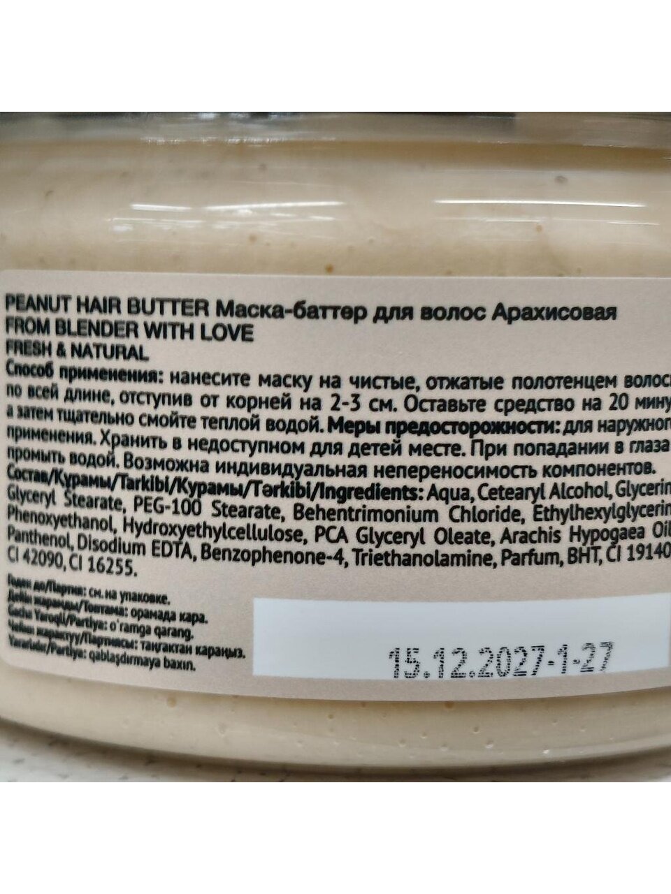 Представляем маску-баттер для сухих и поврежденных волос от бренда From Blender. Это идеальное средство для восстановления и питания волос, которое вернет им жизненную силу и блеск. Специальная формула с арахисовым маслом обеспечивает интенсивное увлажнение и защиту от внешних факторов.