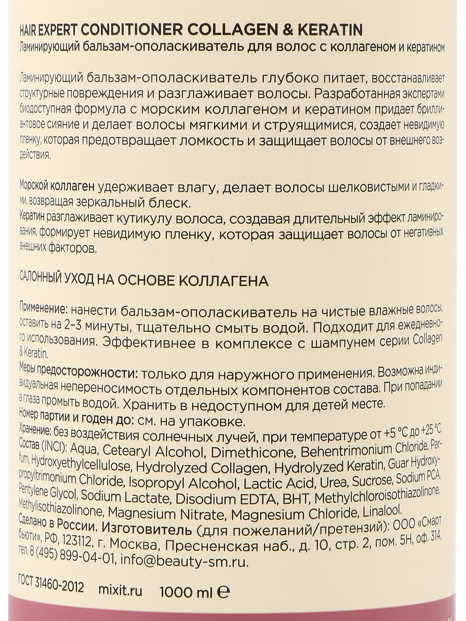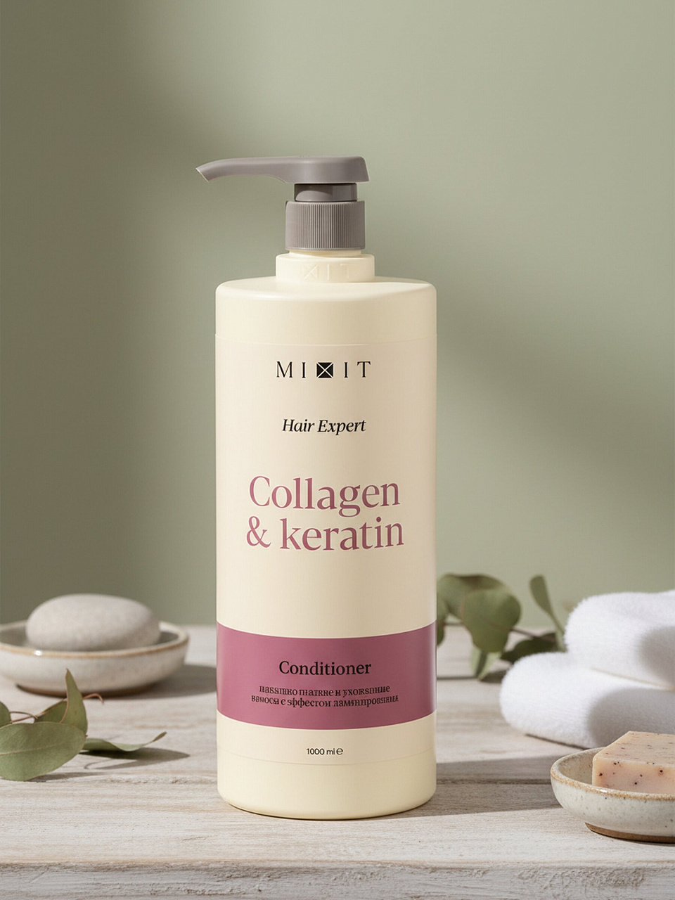 Бальзам-ополаскиватель Mixit Hair Expert 1л — восстановление и укрепление повреждённых волос за 2 недели. Объем для всей семьи, экономия до 30%!