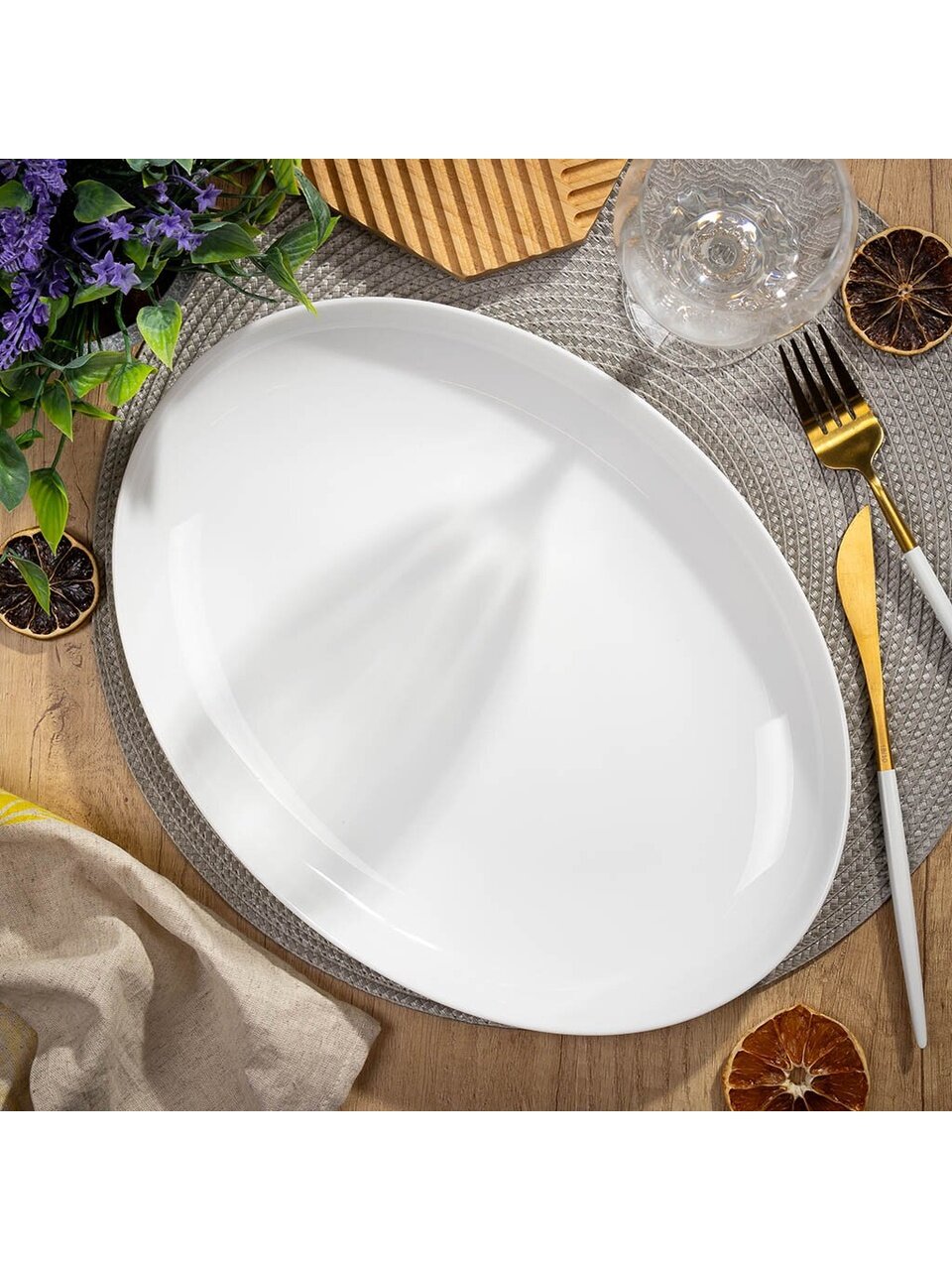 Овальное блюдо из стеклокерамики 24х33 см Daniks Бэль — стильное решение для сервировки и подарка: минимализм, универсальность, долговечность.