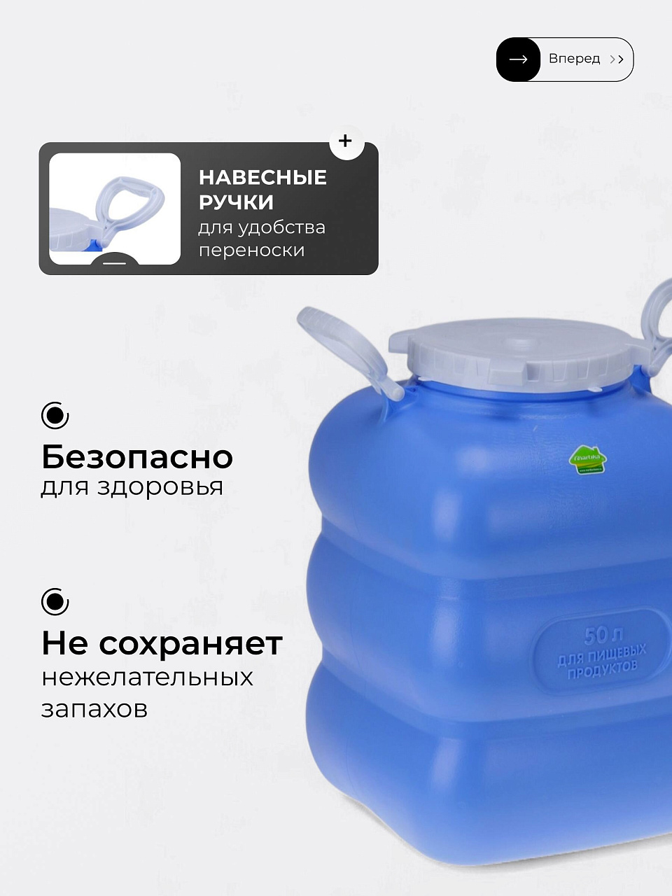 - С ручками для легкой переноски — подходит для хранения воды, заготовок, круп, солений и транспортировки продуктов