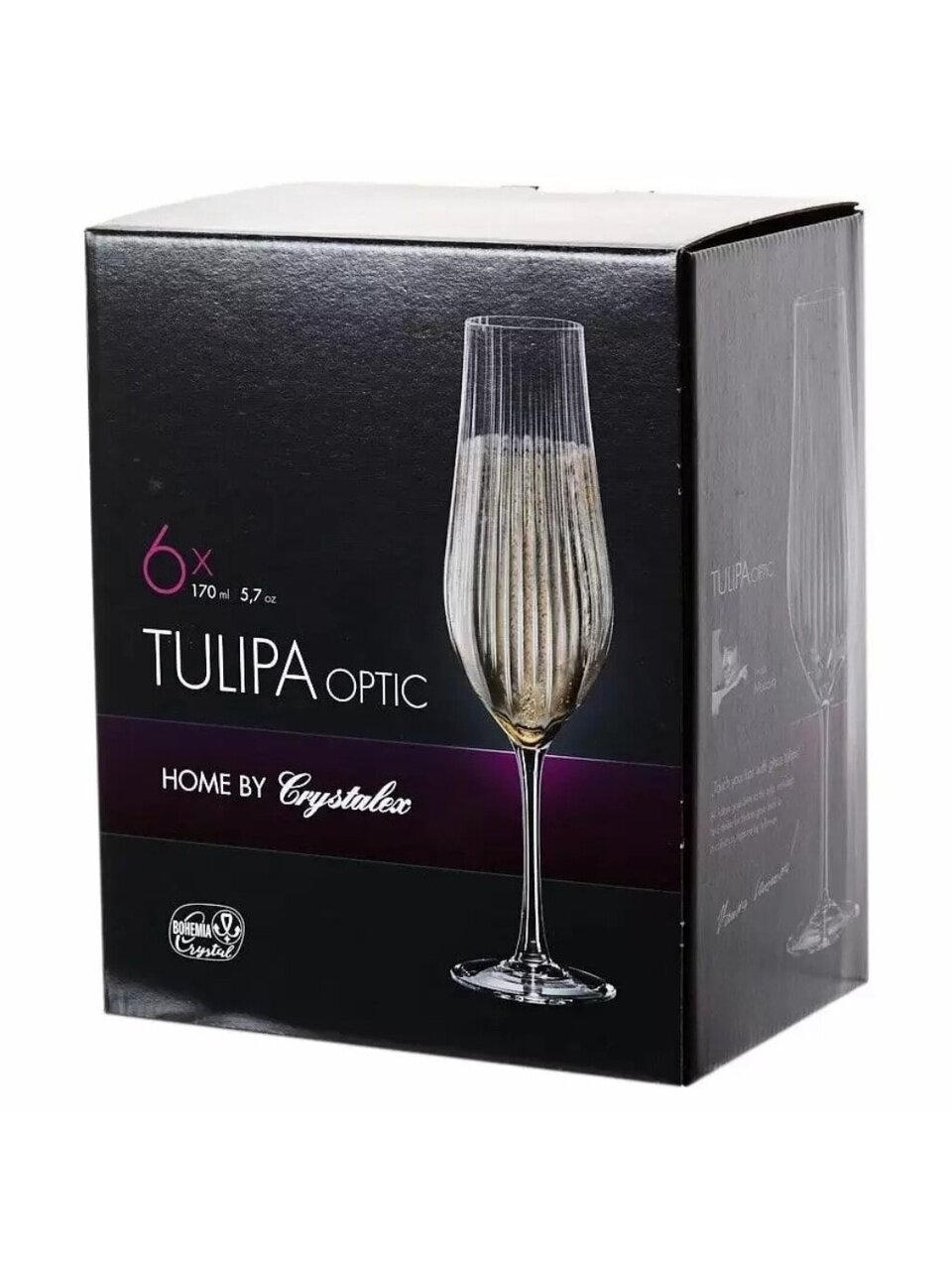 Бокалы для шампанского Bohemia Tulipa optic 170 мл (6 шт): премиальное стекло, рельефная текстура, подарочная упаковка — идеальный выбор для праздника и подарка.