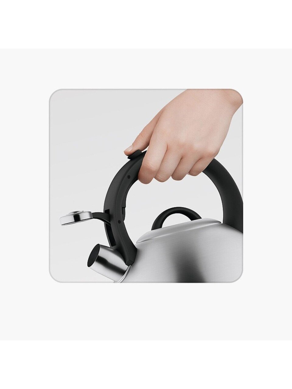 Чайник изготовлен из высококачественной нержавеющей стали, что гарантирует долговечность и устойчивость к коррозии. Объем 3 литра позволяет приготовить достаточное количество горячей воды для большой семьи или компании друзей. Удобный свисток сигнализирует о закипании воды, что делает использование чайника безопасным и комфортным.