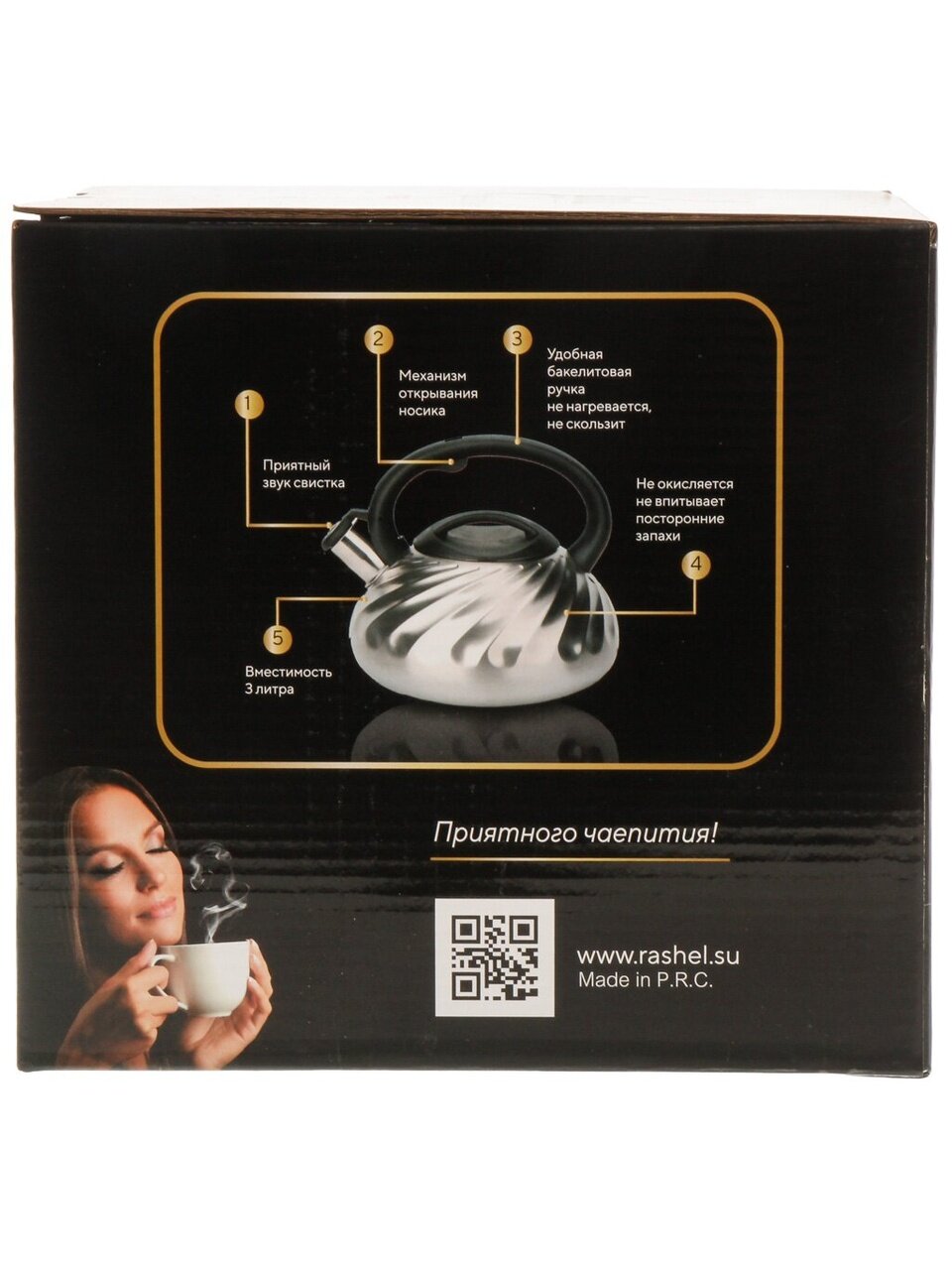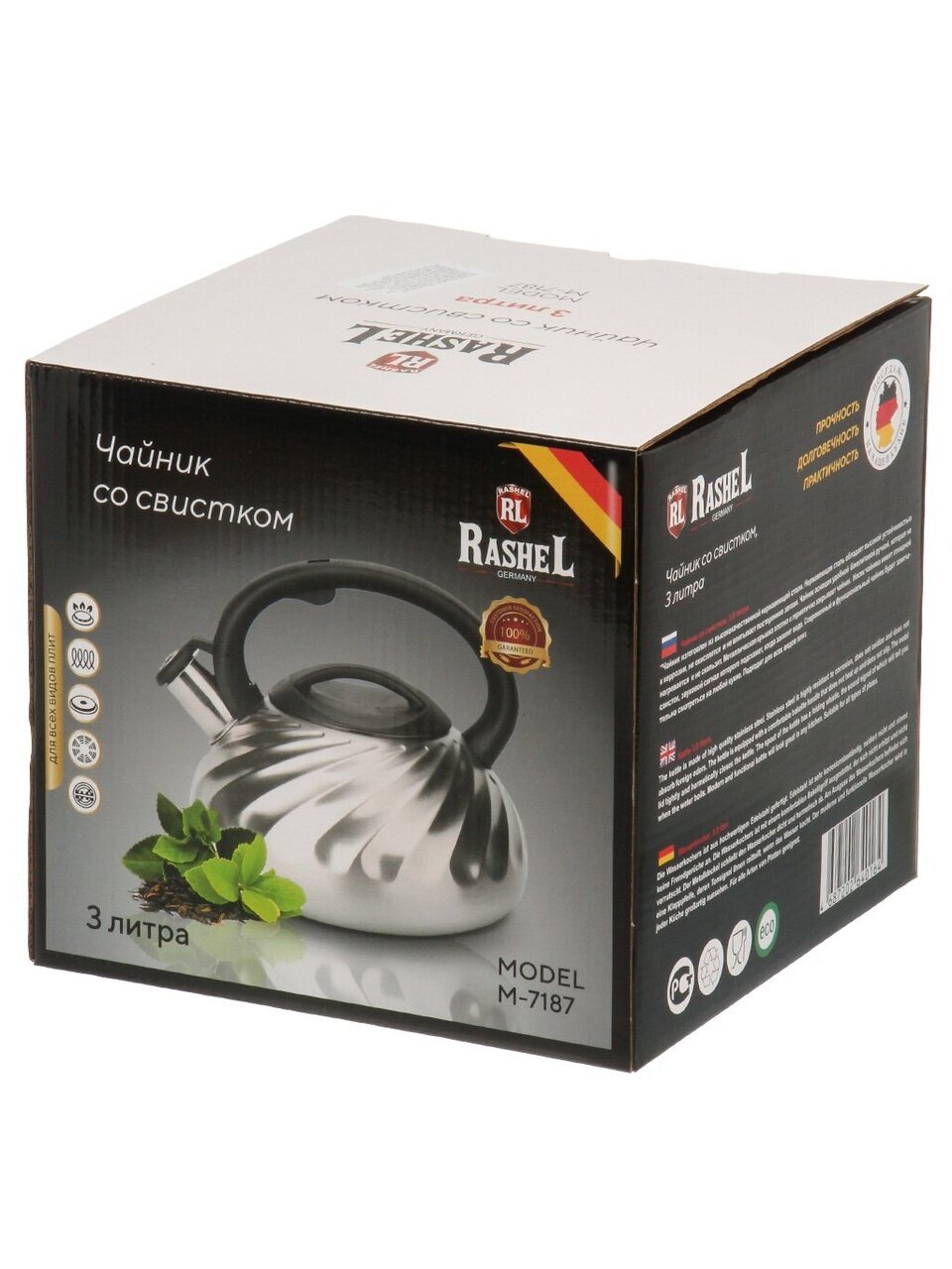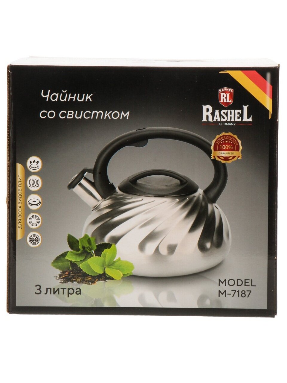 Вы можете приобрести «Чайник нержавеющая сталь, 3 л, со свистком, матовый, RasheL, индукция, серебристый, М-7187» и другие товары в нашем интернет-магазине в Клинцах по низким ценам и с бесплатным самовывозом.
