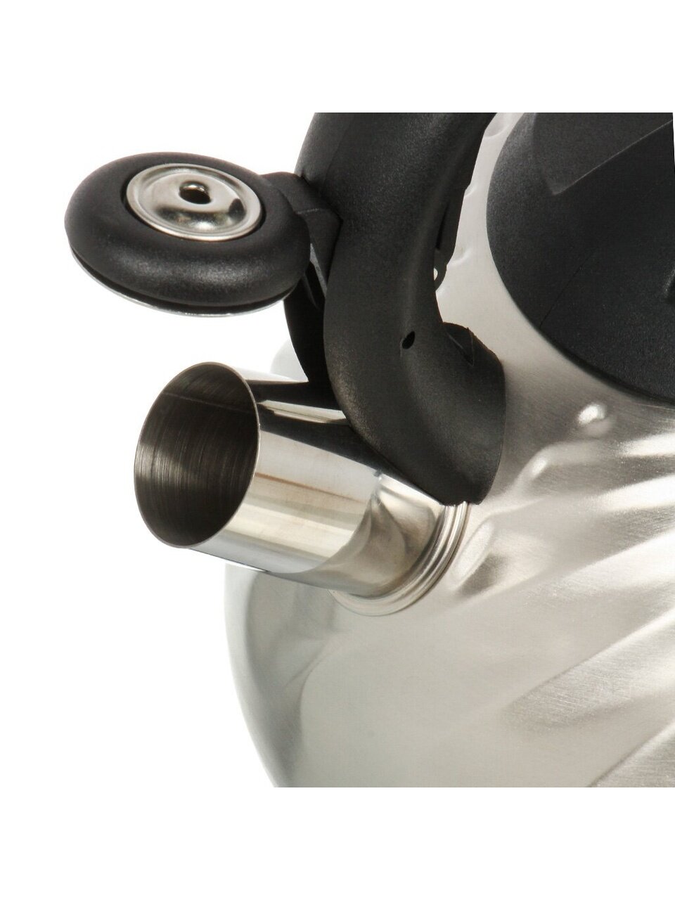 Чайник оснащен свистком, что гарантирует безопасность и удобство: вода не закипит незамеченной. Термоизолированная ручка из бакелита обеспечивает комфортное и безопасное использование, защищая от ожогов даже при высоких температурах. Отсутствие декора и эмалированного покрытия подчеркивает минималистичный дизайн, делая модель идеальной для тех, кто ценит простоту и практичность.