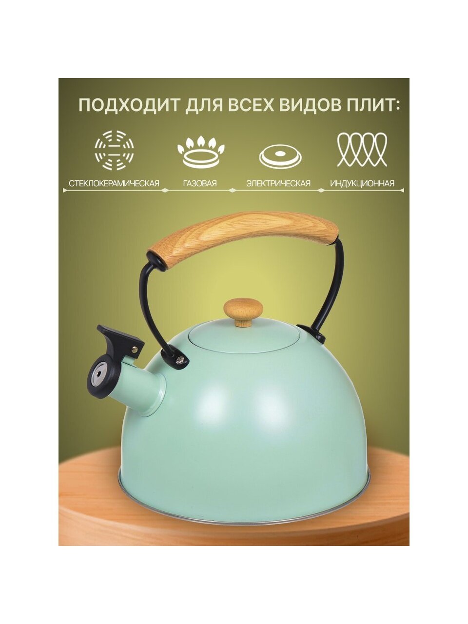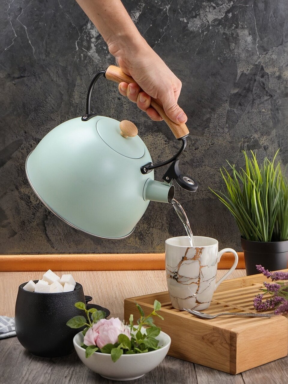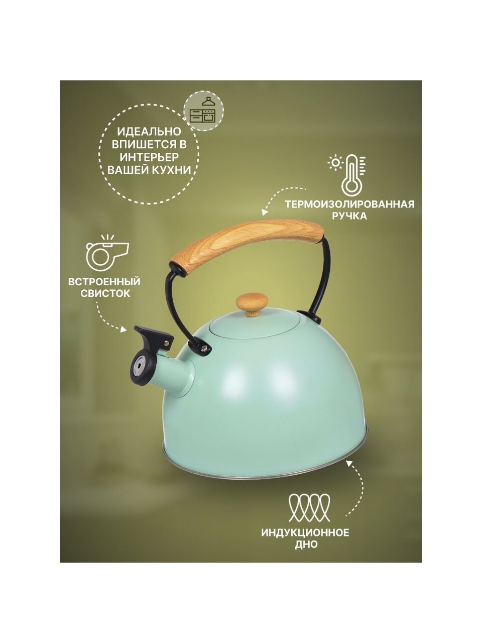 Вы можете приобрести «Чайник нержавеющая сталь, 2.5 л, со свистком, матовый, ручка металл, дерево, Daniks, ментоловый, MSY-078» и другие товары в нашем интернет-магазине в Клинцах по низким ценам и с бесплатным самовывозом.
