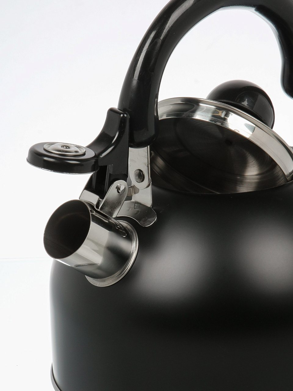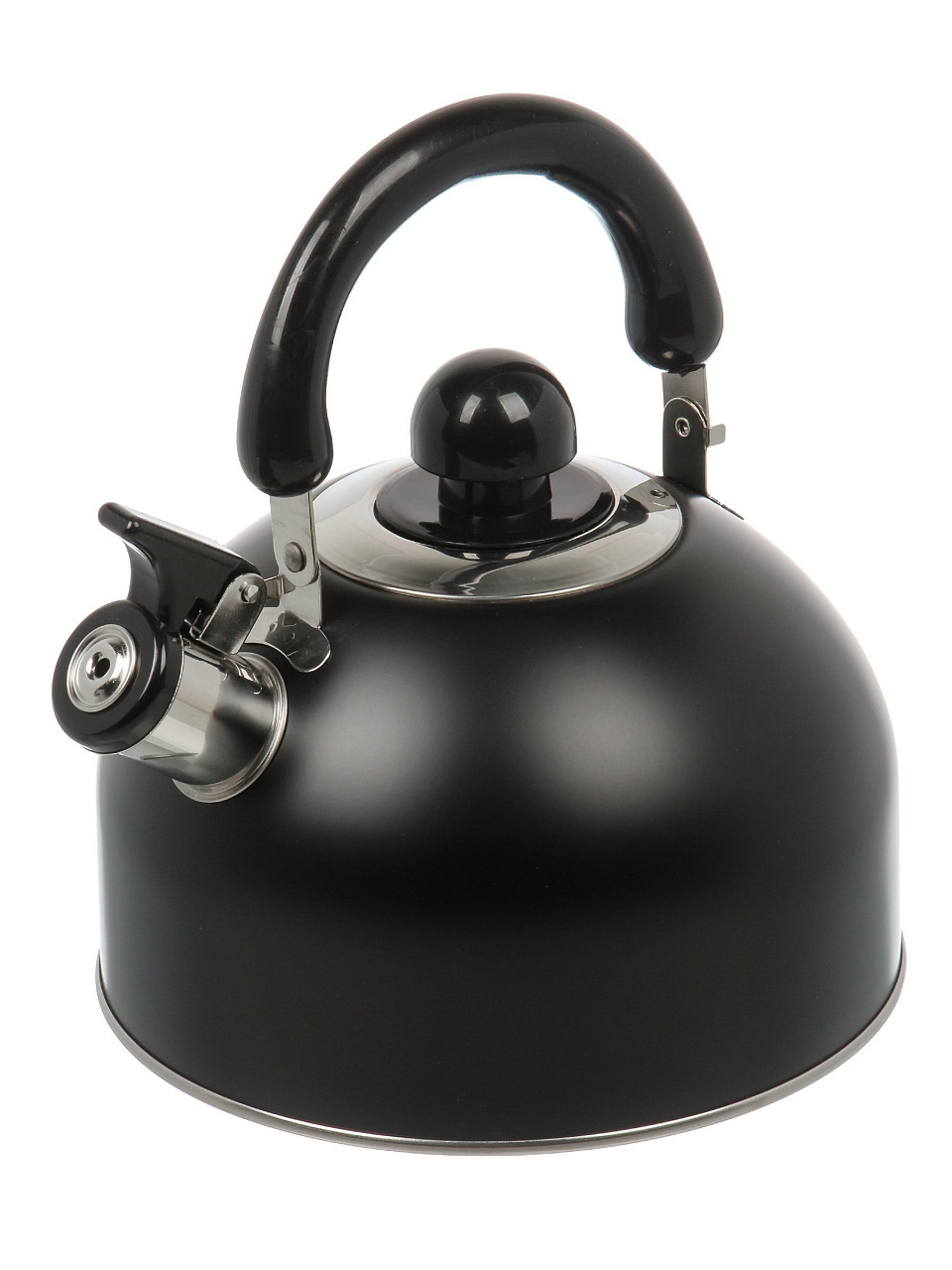 Чайник оснащён громким свистком — удобно, если вы часто отвлекаетесь на дела. Объём 2.5 л оптимален для семьи или небольшой компании, а отсутствие эмалированного покрытия облегчает чистку и исключает появление сколов. В отличие от аналогов с пластиковыми деталями, этот чайник полностью металлический, что увеличивает срок службы и снижает риск поломки.