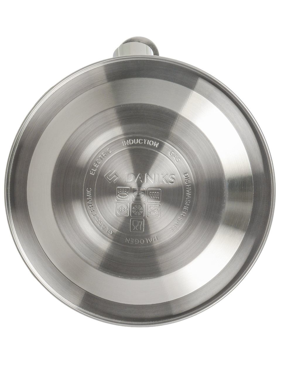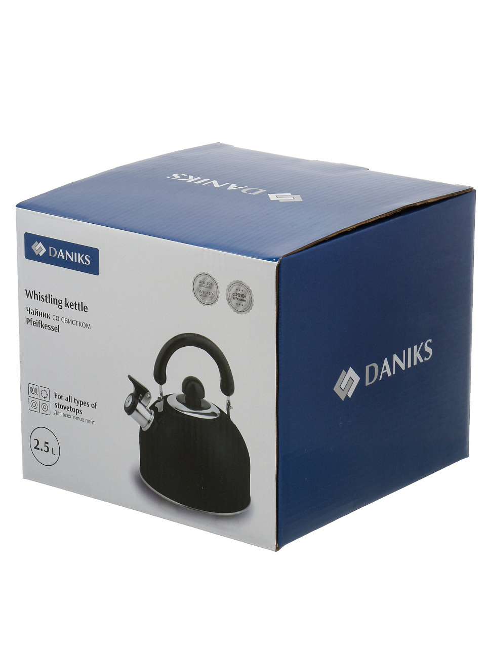 Чайник Daniks 2.5 л из нержавеющей стали: матовый корпус, металлическая ручка, свисток, подходит для индукции. Надёжный выбор для кухни и дачи по выгодной цене.