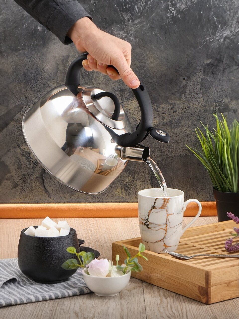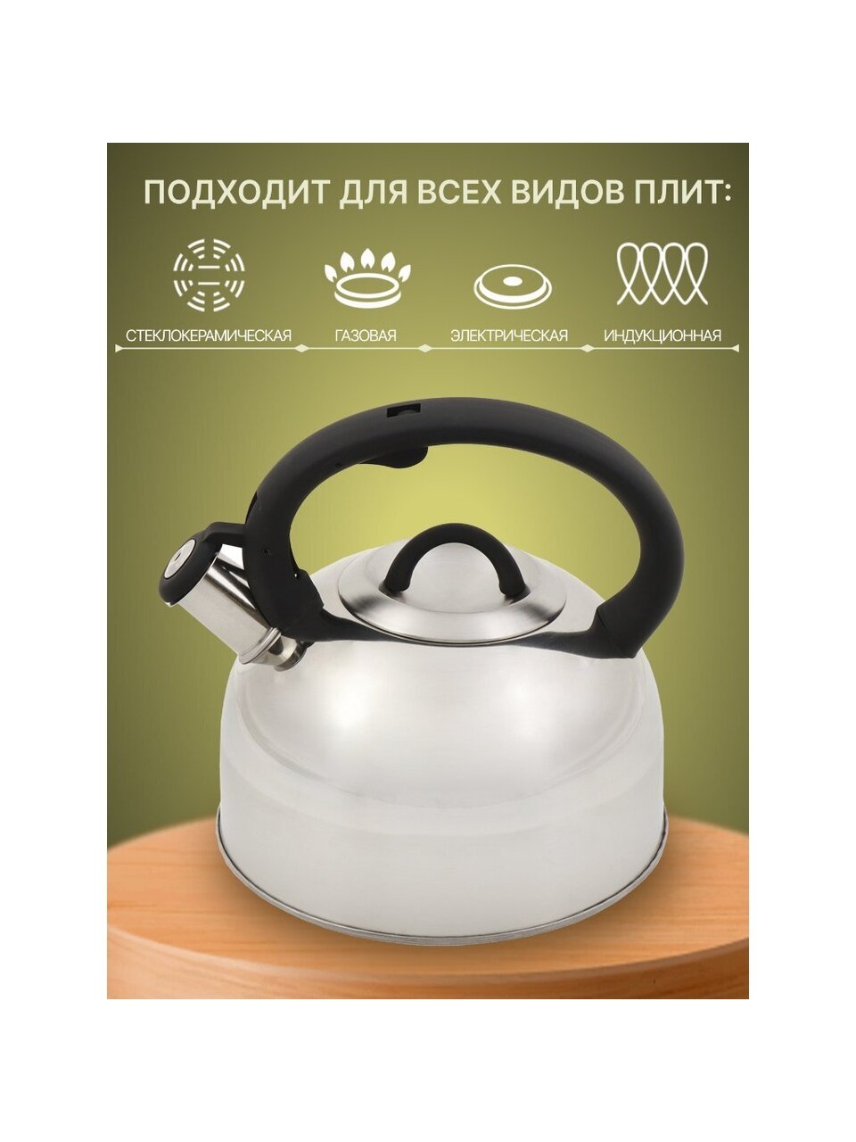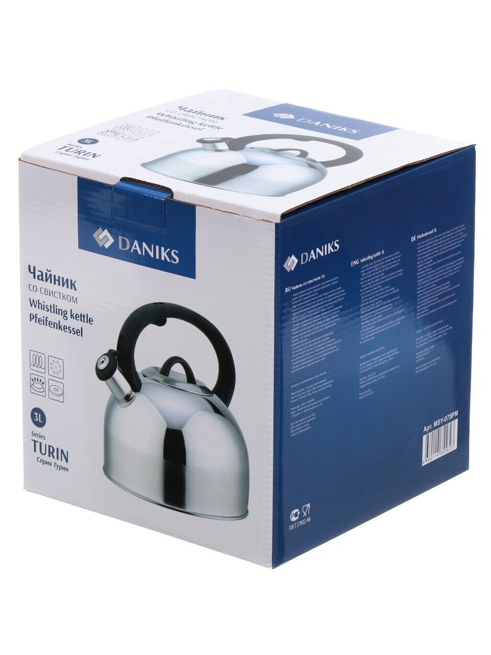 Вы можете приобрести «Чайник нержавеющая сталь, 3 л, со свистком, зеркальный, ручка бакелитовая, с силиконовым покрытием, Daniks, Турин, индукция, MSY-075PM» и другие товары в нашем интернет-магазине в Краснодаре по низким ценам и с бесплатным самовывозом.