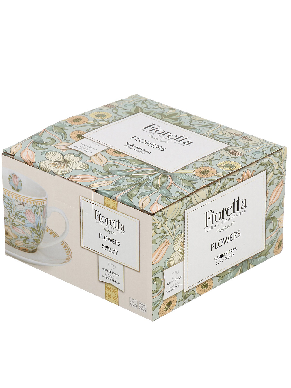 Чайная пара из фарфора Fioretta Flowers (260 мл) — стильный подарок и уют для дома: премиальный фарфор, подарочная упаковка, подходит для СВЧ и ПММ.