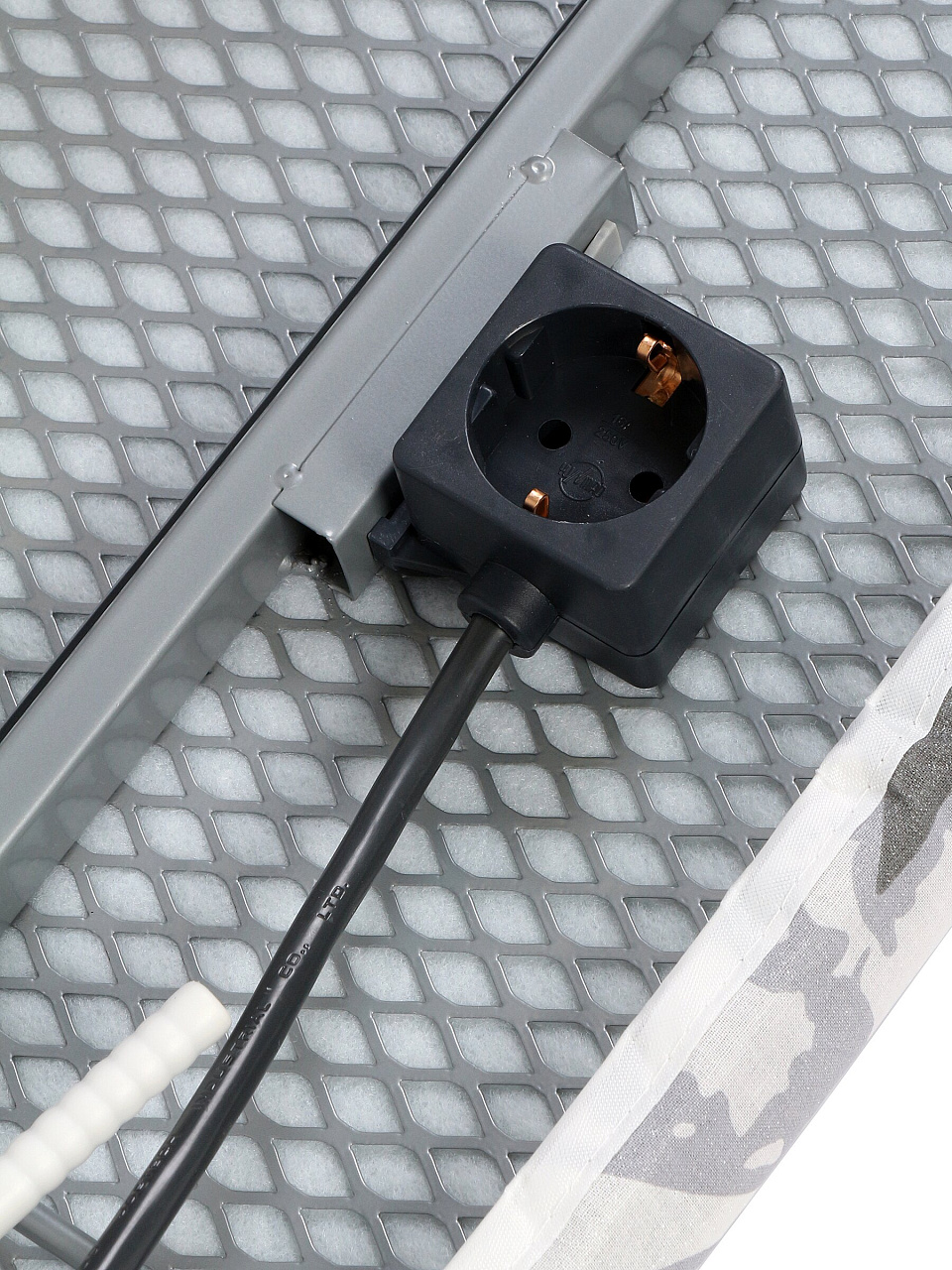 Многие спрашивают: как выбрать гладильную доску для маленькой квартиры или дачи? Эта модель подходит для ограниченного пространства — полка для белья экономит место, а удлинитель 3 м избавляет от необходимости искать розетку рядом. В отличие от аналогов, здесь предусмотрено только одно положение по высоте, что гарантирует стабильность при глажке.