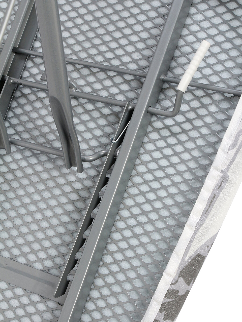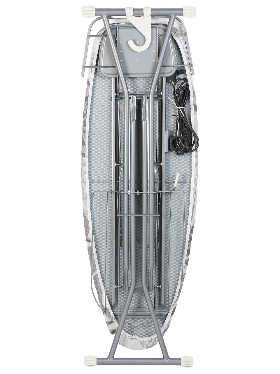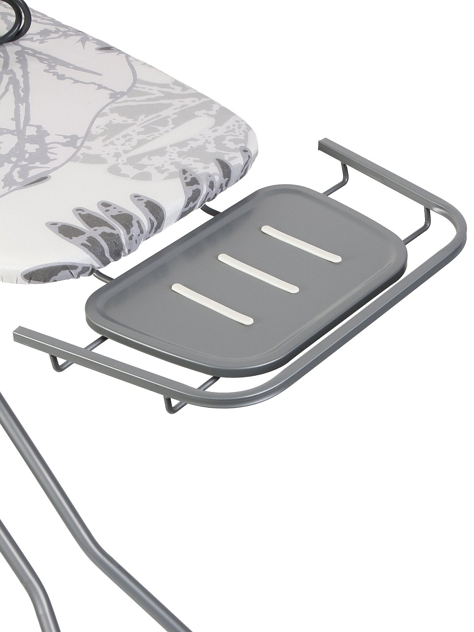 - Большая рабочая поверхность 129.5×46 см — удобно гладить постельное бельё и крупные вещи.