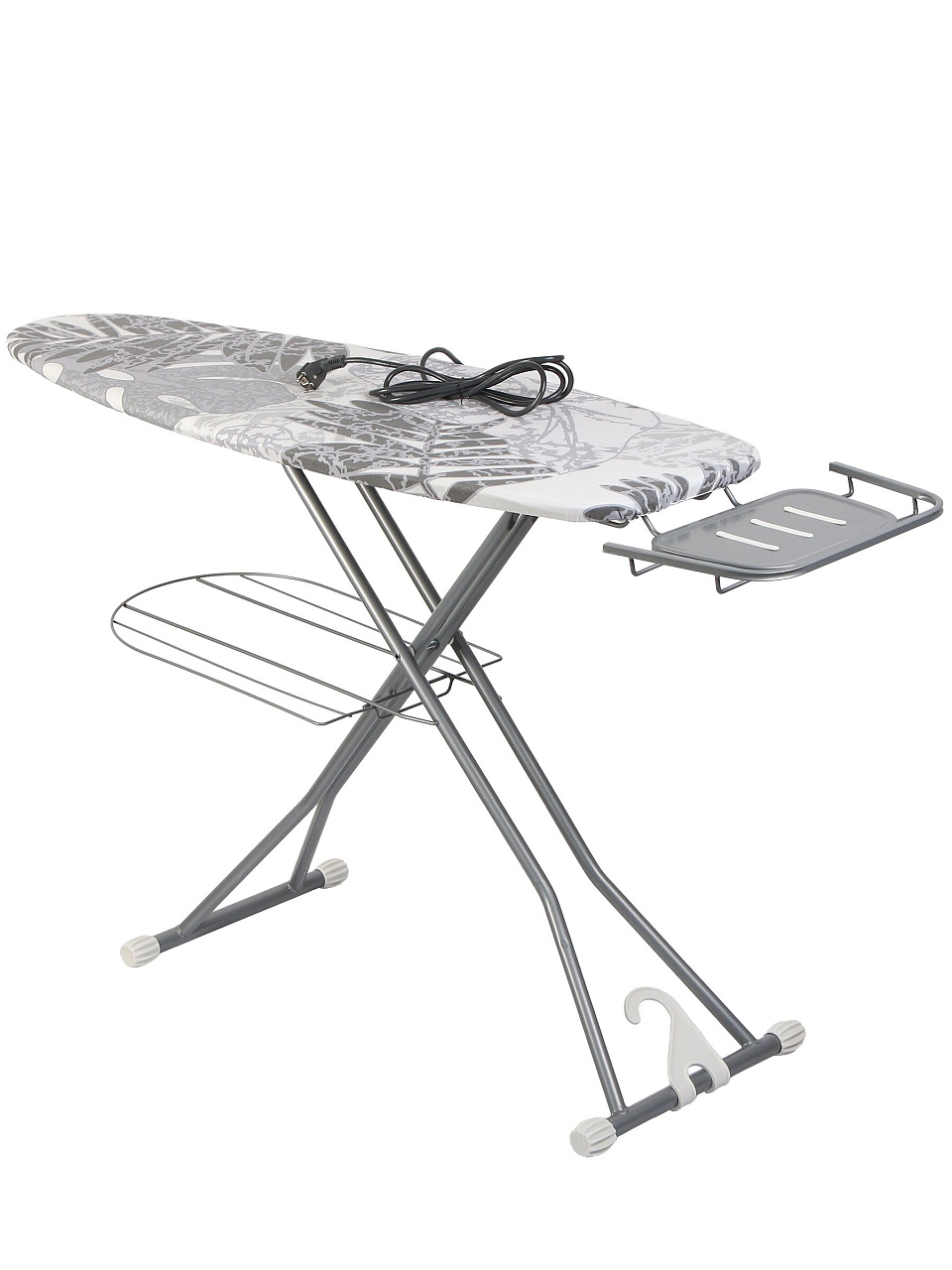Доска гладильная 129.5х46 см с подставкой для утюга, полкой для белья и удлинителем 3 м — максимум комфорта для быстрой глажки дома и на даче.