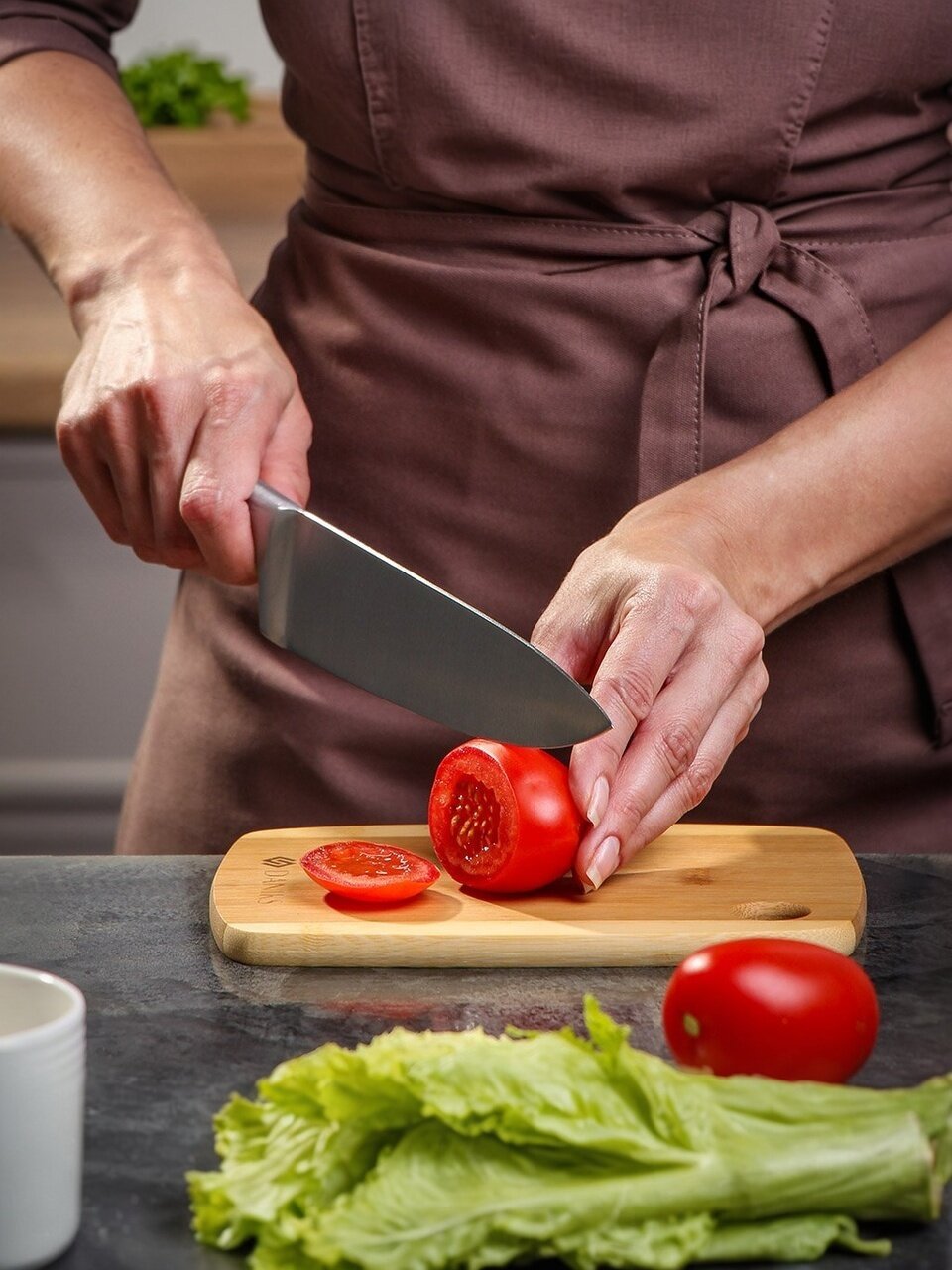 Разделочная доска из бамбука - это незаменимый аксессуар на любой кухне. Она изготовлена из натурального бамбука, обеспечивающий длительный срок эксплуатации изделий. В отличие от других досок (пластик, бук или береза) эта доска не только легко моется и не скапливает бактерии, но и не расслаивается при регулярном использовании