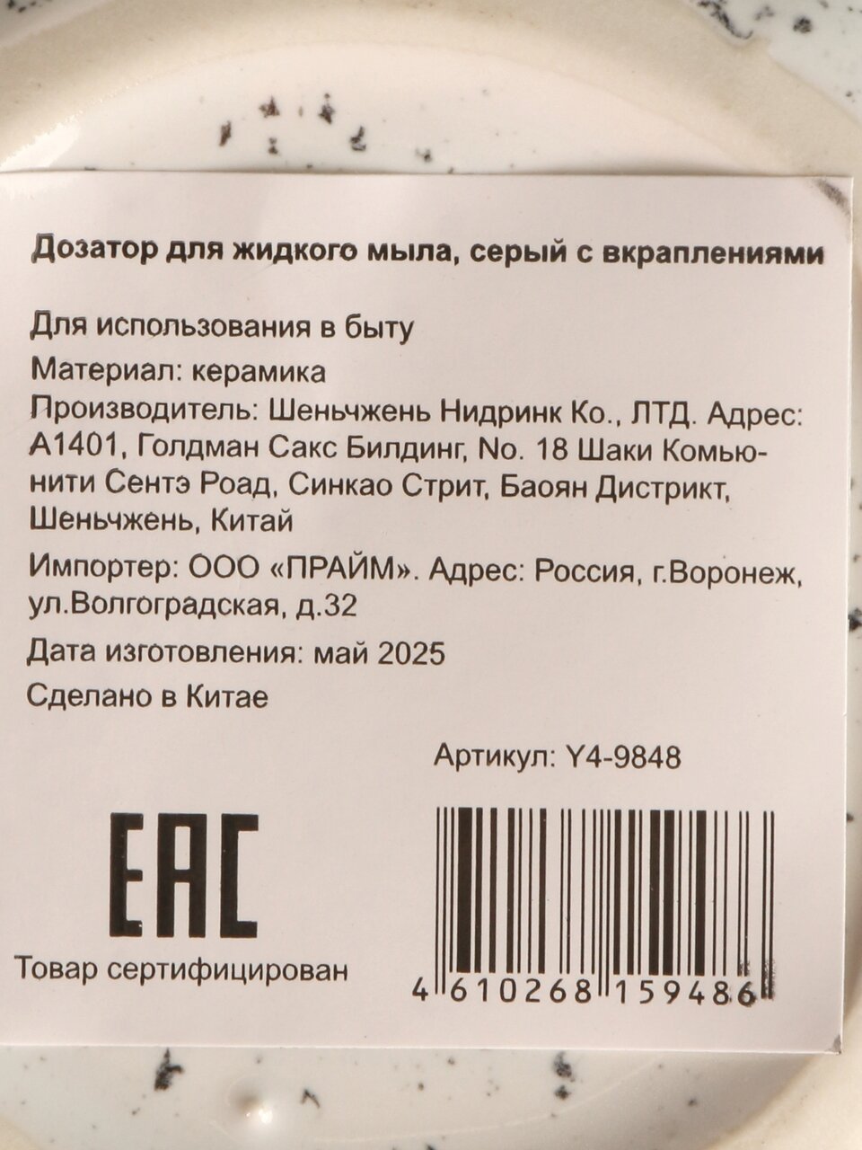 Вы можете приобрести «Дозатор для жидкого мыла, керамика, 7.3х7.3х17.5 см, серый с вкраплениями, Y4-9848» и другие товары в нашем интернет-магазине в Липецке по низким ценам и с бесплатным самовывозом.