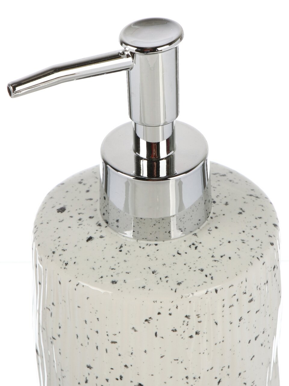 Дозатор для жидкого мыла из керамики — это практичное решение для поддержания чистоты и порядка в ванной комнате или на кухне. Серый цвет с оригинальными вкраплениями делает этот аксессуар акцентом в современном интерьере. Благодаря универсальному размеру и удобному механическому нажимному дозатору, подходит для жидкого мыла, геля или антисептика. Если вы ищете, какой дозатор выбрать для частого использования, обратите внимание на керамику — она устойчива к воздействию влаги и легко моется.