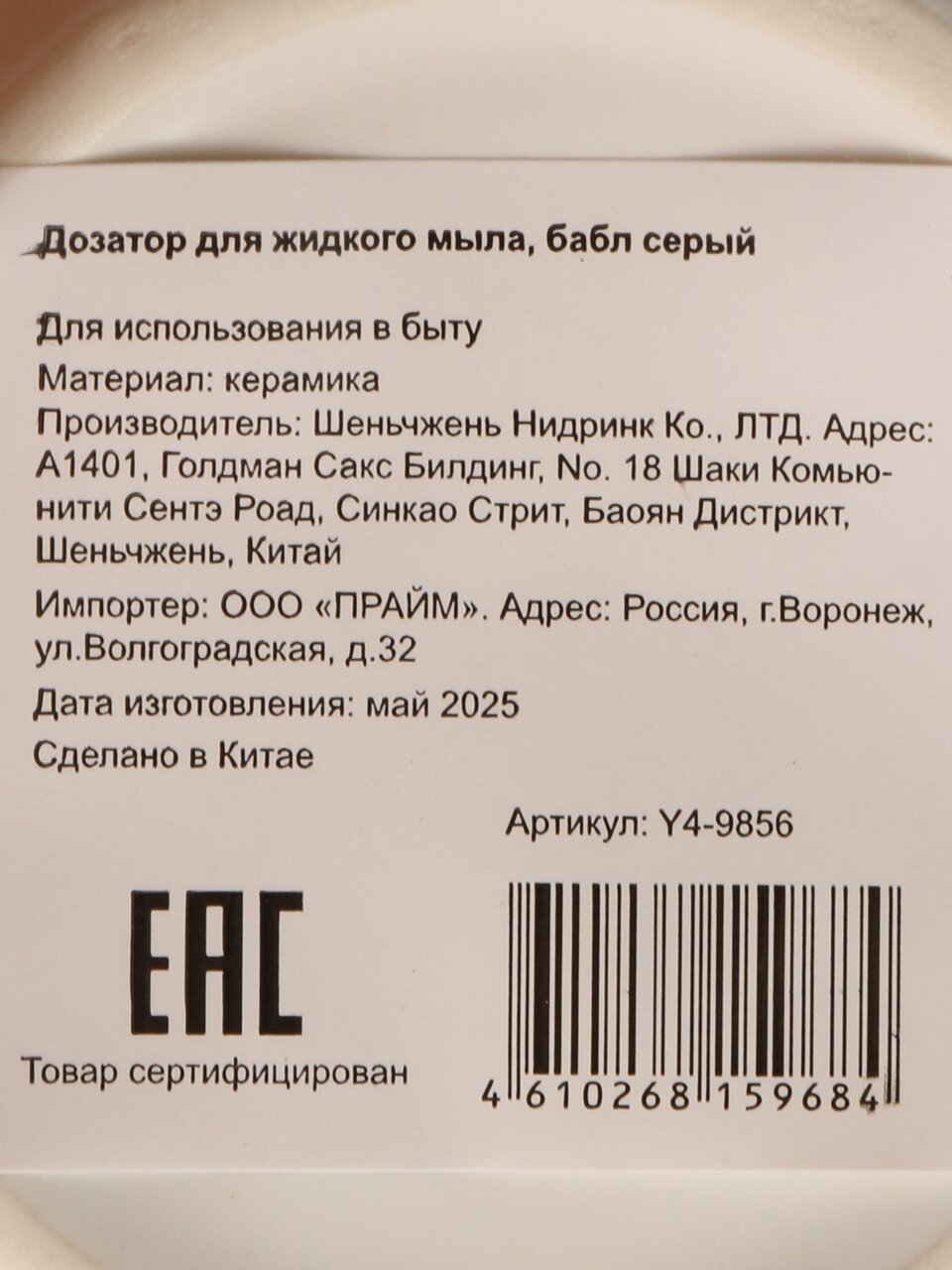 Вы можете приобрести «Дозатор для жидкого мыла, керамика, 7х7х17.5 см, бабл серый, Y4-9856» и другие товары в нашем интернет-магазине в Липецке по низким ценам и с бесплатным самовывозом.