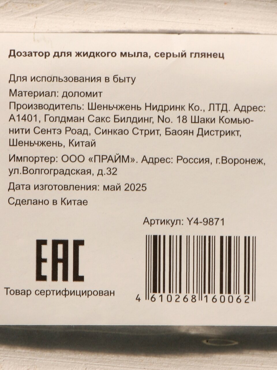 Какой размер у дозатора для жидкого мыла Y4-9871?