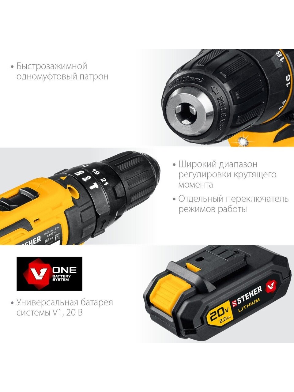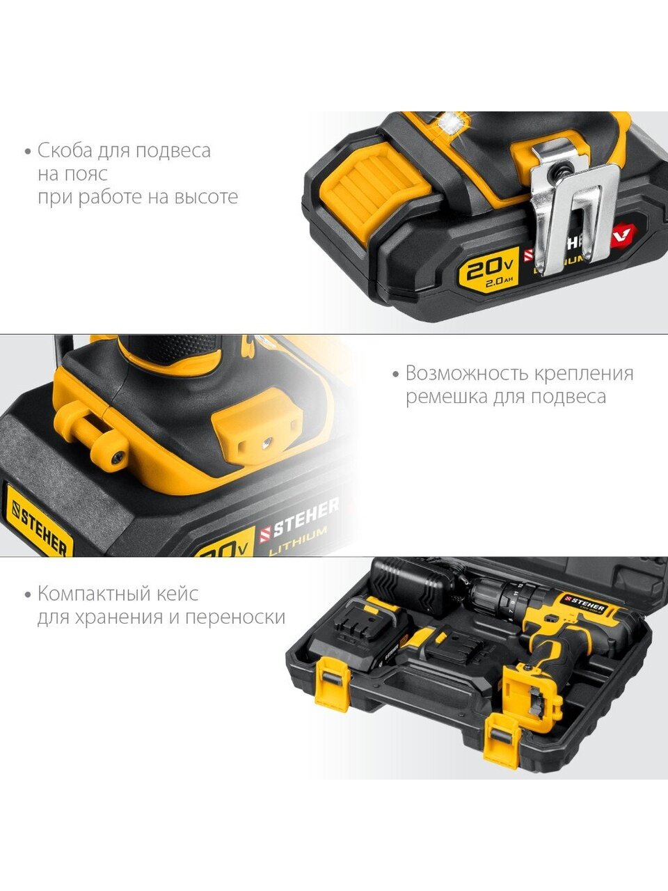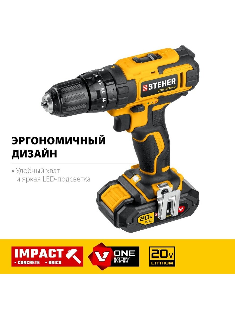Вы можете приобрести «Дрель-шуруповерт аккумуляторный, ударный, Steher, CDS-200-2, 20 В, кейс» и другие товары в нашем интернет-магазине в Орле по низким ценам и с бесплатным самовывозом.