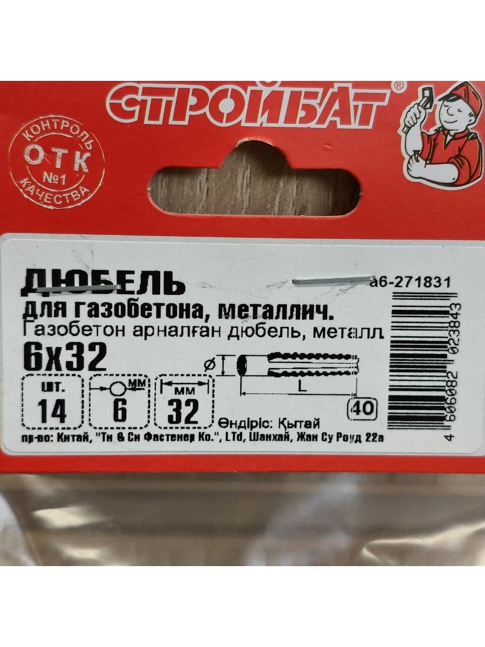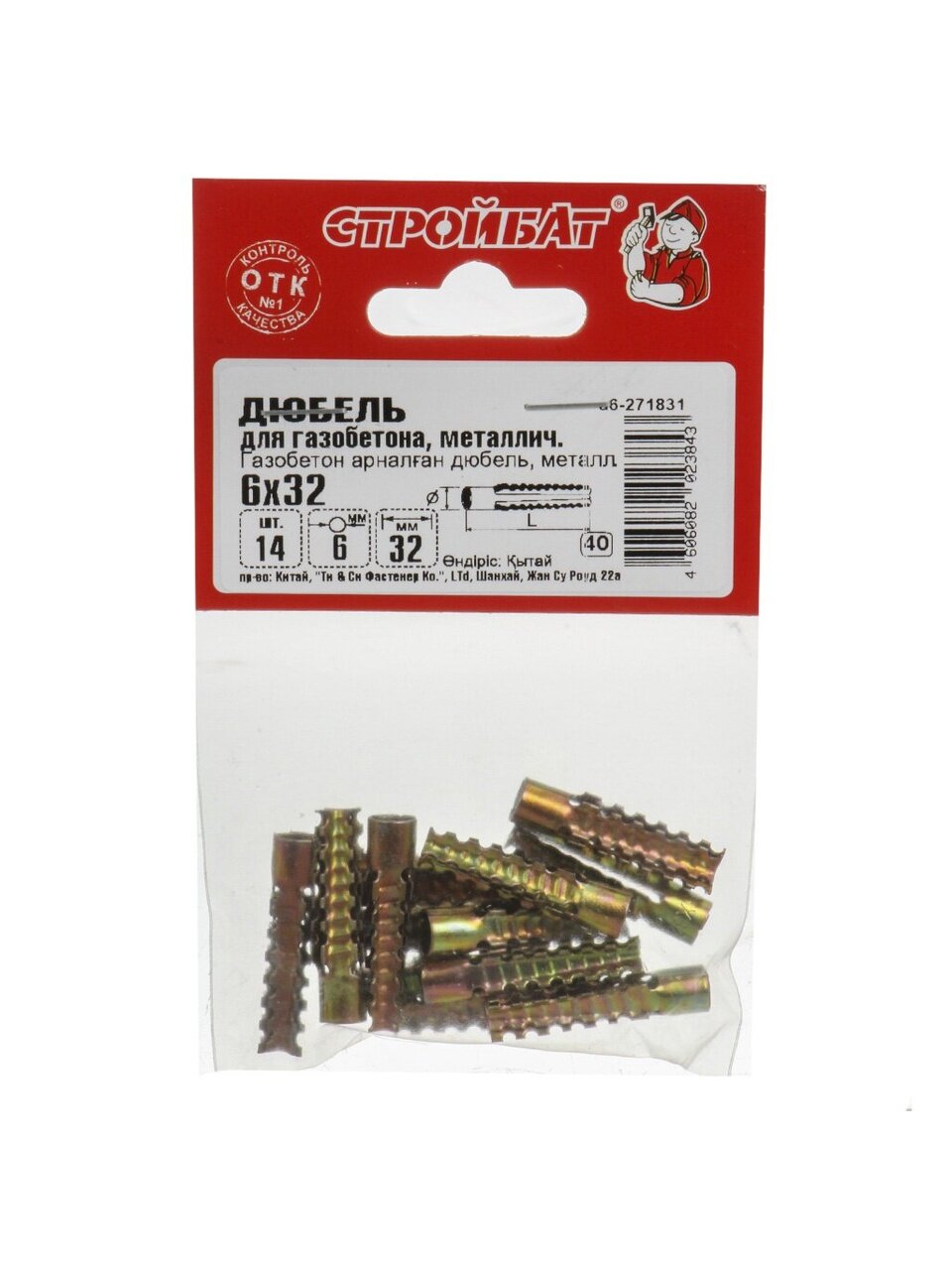 Вы можете приобрести «Дюбель для газобетона, металл, диаметр 6х32 мм, 14 шт, Стройбат, 271831» и другие товары в нашем интернет-магазине в Курске по низким ценам и с бесплатным самовывозом.