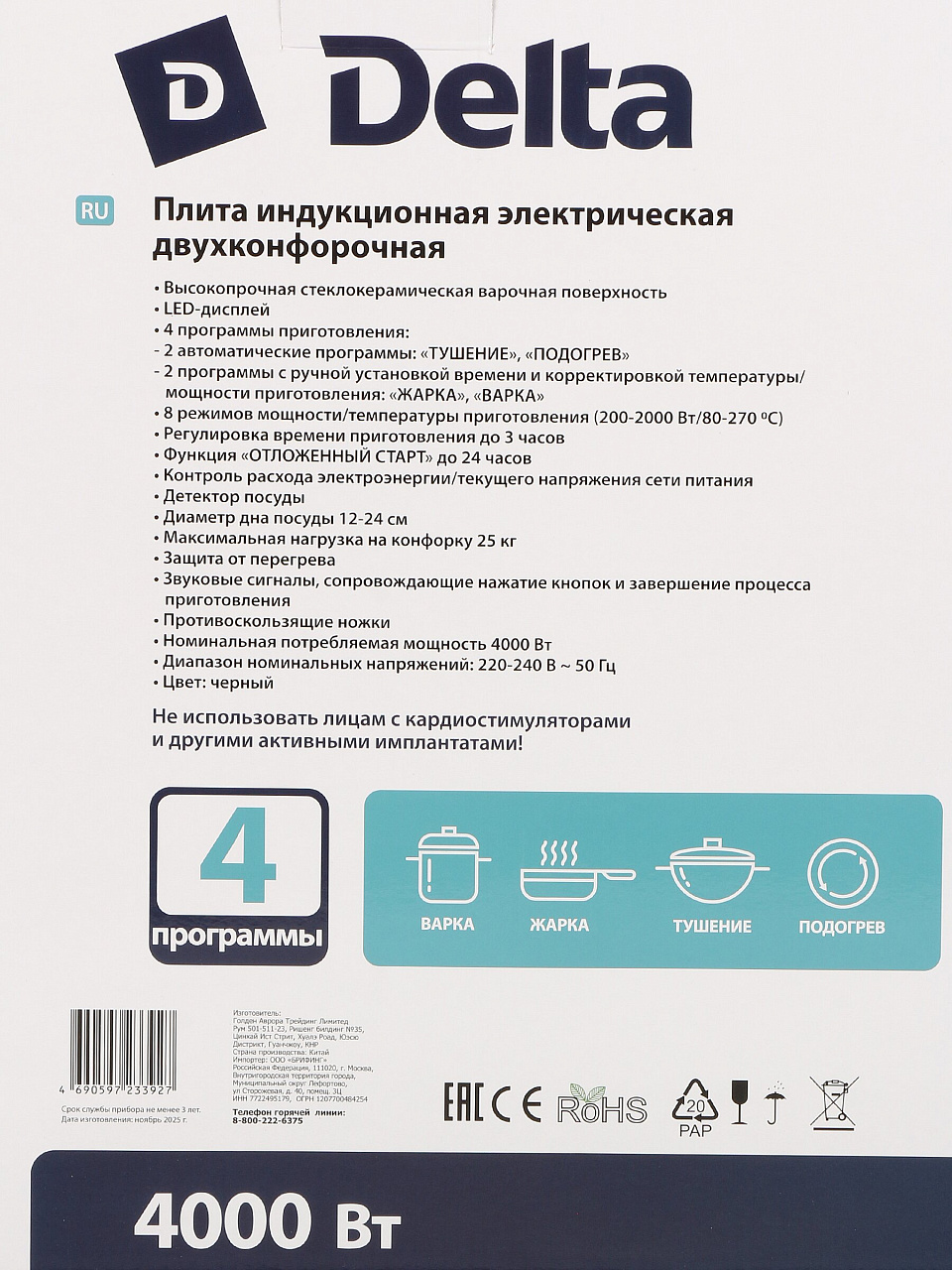 Закажите индукционную плиту Delta с доставкой — получите энергоэффективное решение для быстрой готовки и стильный акцент для вашей кухни. Гарантия производителя и поддержка сервиса — ваша уверенность в покупке.