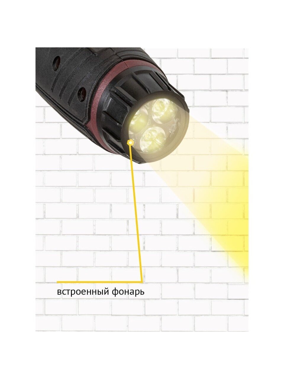 - Эргономичная рукоятка с противоскользящим покрытием обеспечивает надежное удержание инструмента в руке, а светодиодная подсветка рабочей зоны позволяет работать даже в условиях недостаточного освещения.