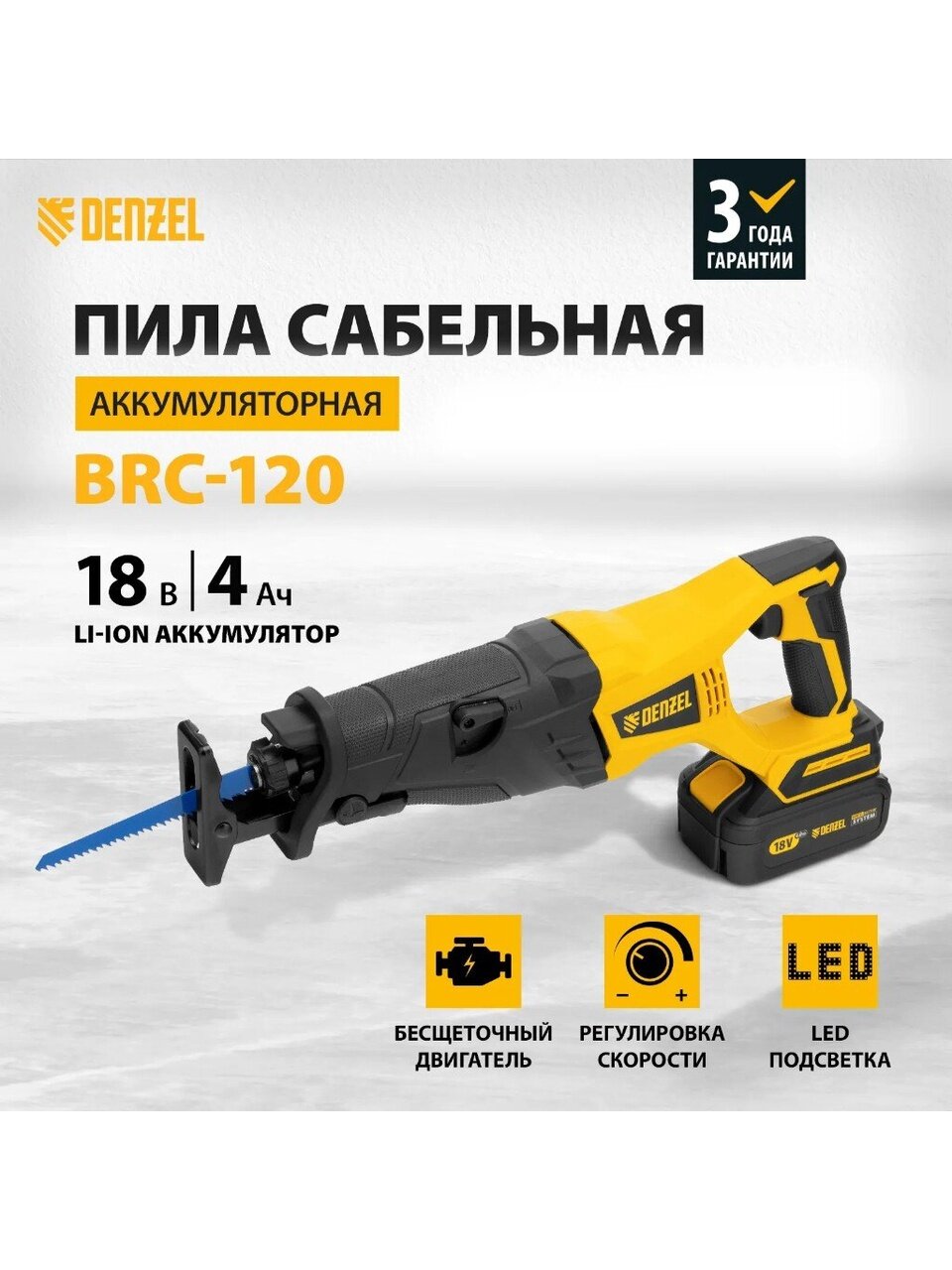 Вы можете приобрести «Пила сабельная, аккумуляторная, Denzel, BRC-120, Li-ion, 4 А.ч, 18 В, 1 акк, 120 мм, 3100 об/мин, бесщеточная, 28460» и другие товары в нашем интернет-магазине в Ставрополе по низким ценам и с бесплатным самовывозом.