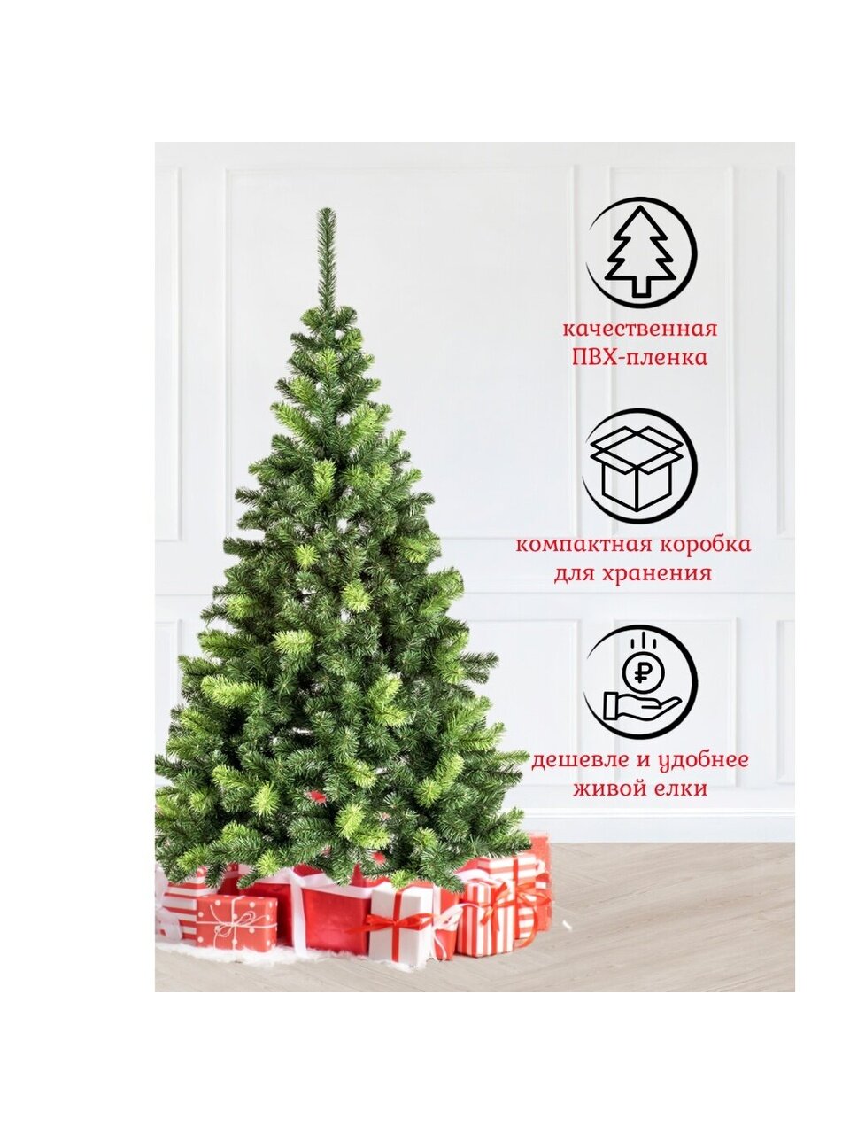 Часто спрашивают — чем отличается елка из ПВХ от моделей с литой хвоей? ПВХ-пленка делает ветви мягкими и приятными на ощупь, при этом елка легче по весу и быстрее собирается. Классическая форма и насыщенный зеленый цвет подходят для любого интерьера, а разборная конструкция позволяет удобно хранить елку вне сезона. Подходит ли для небольших помещений? Да, высота 180 см — универсальный вариант для квартир, офисов, детских комнат, а также для дачи или подарка близким.