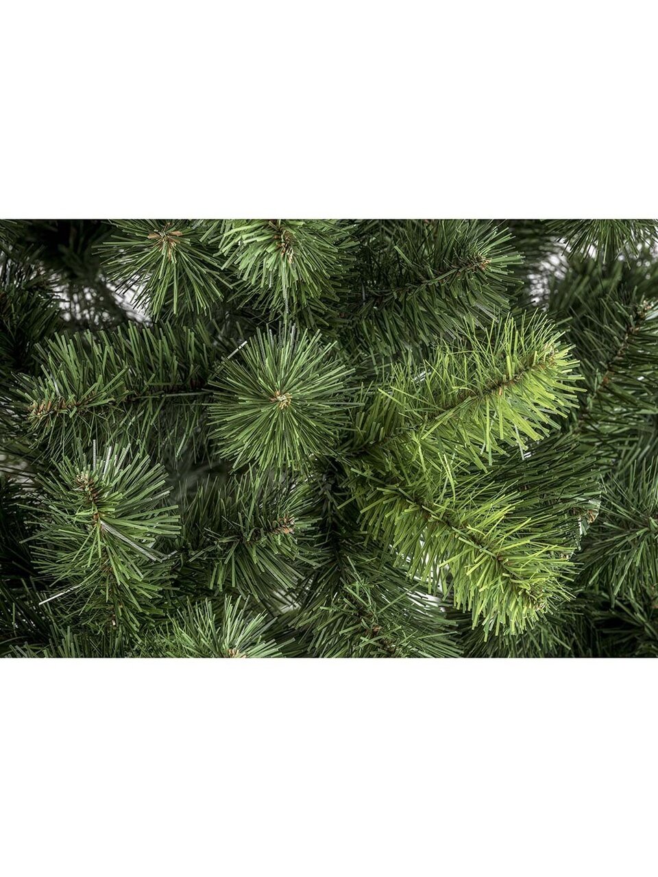 Высота — 180 см, материал хвои — ПВХ-пленка, подставка — пластик, конструкция полностью разборная, цвет — насыщенно-зеленый.