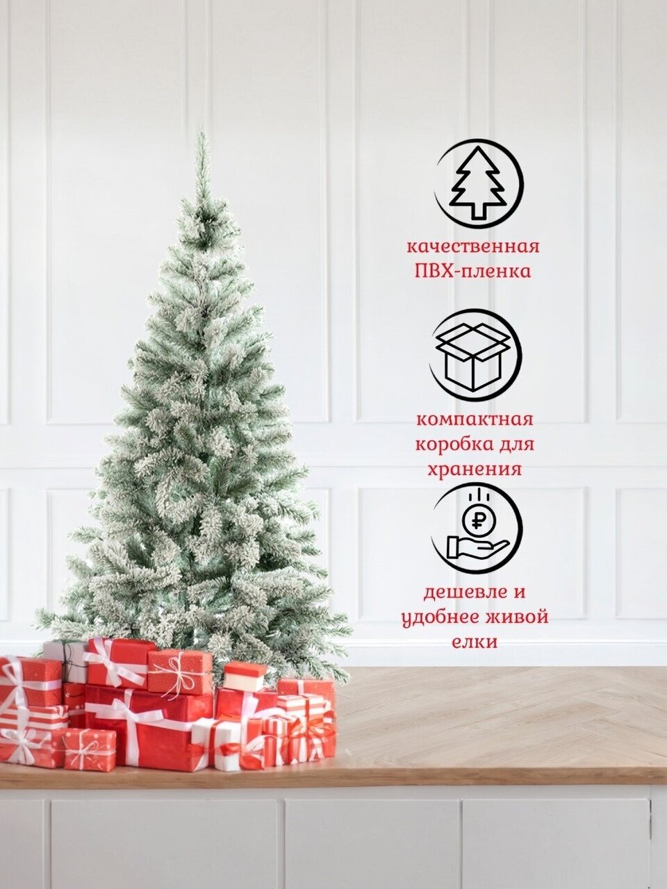 Елка новогодняя напольная 180 см «Лена заснеженная» — эффект заснеженной ели для уюта дома или дачи, быстрая сборка, долговечная хвоя ПВХ.