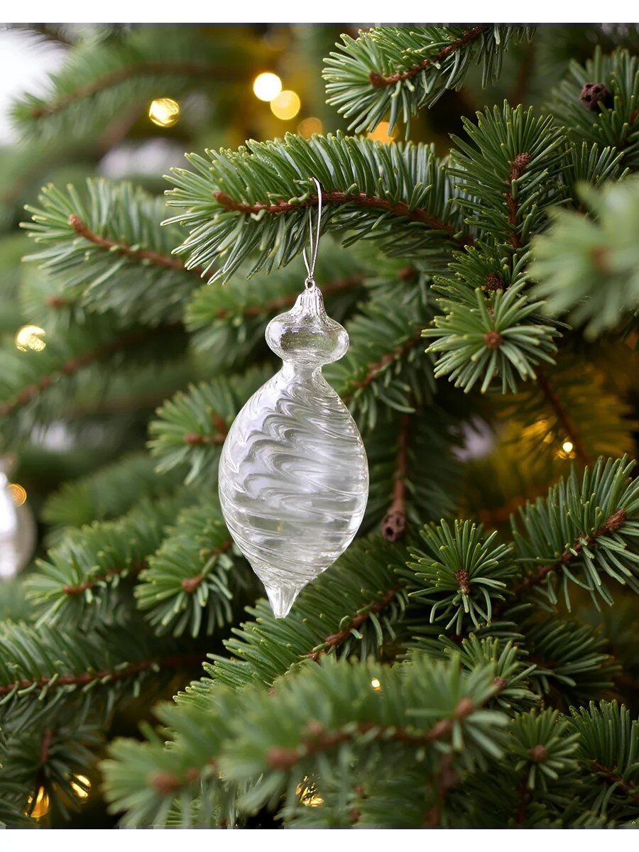 Елочное украшение Веретено 10 см из прозрачного стекла — стильный акцент для новогодней елки, который подчеркнет индивидуальность вашего декора и станет идеальным подарком.