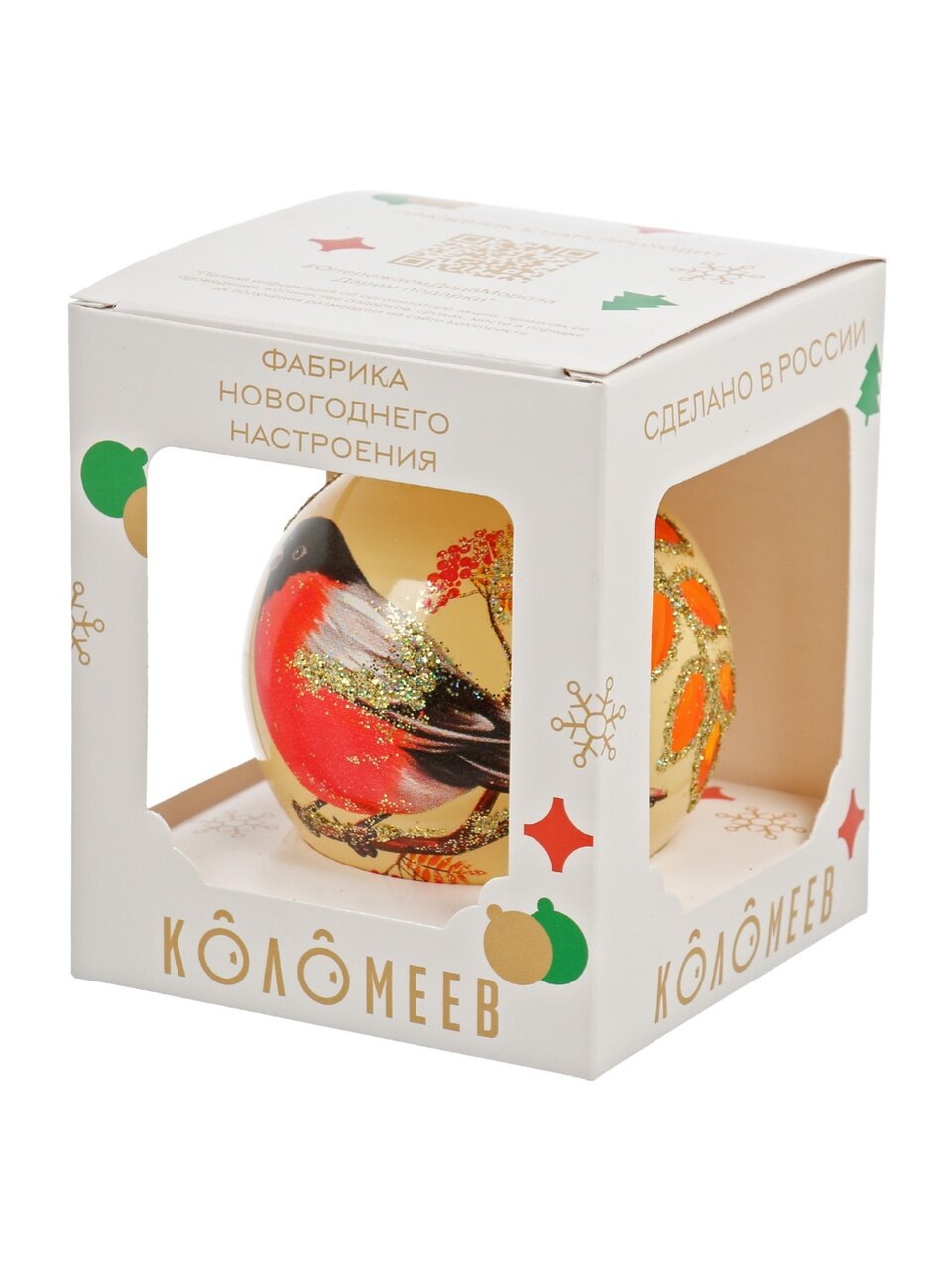 Елочный шар «Сказочный снегирь» 8 см — стеклянная игрушка с ручной росписью в подарочной коробке. Эмоции, уют и стиль для вашей новогодней елки!