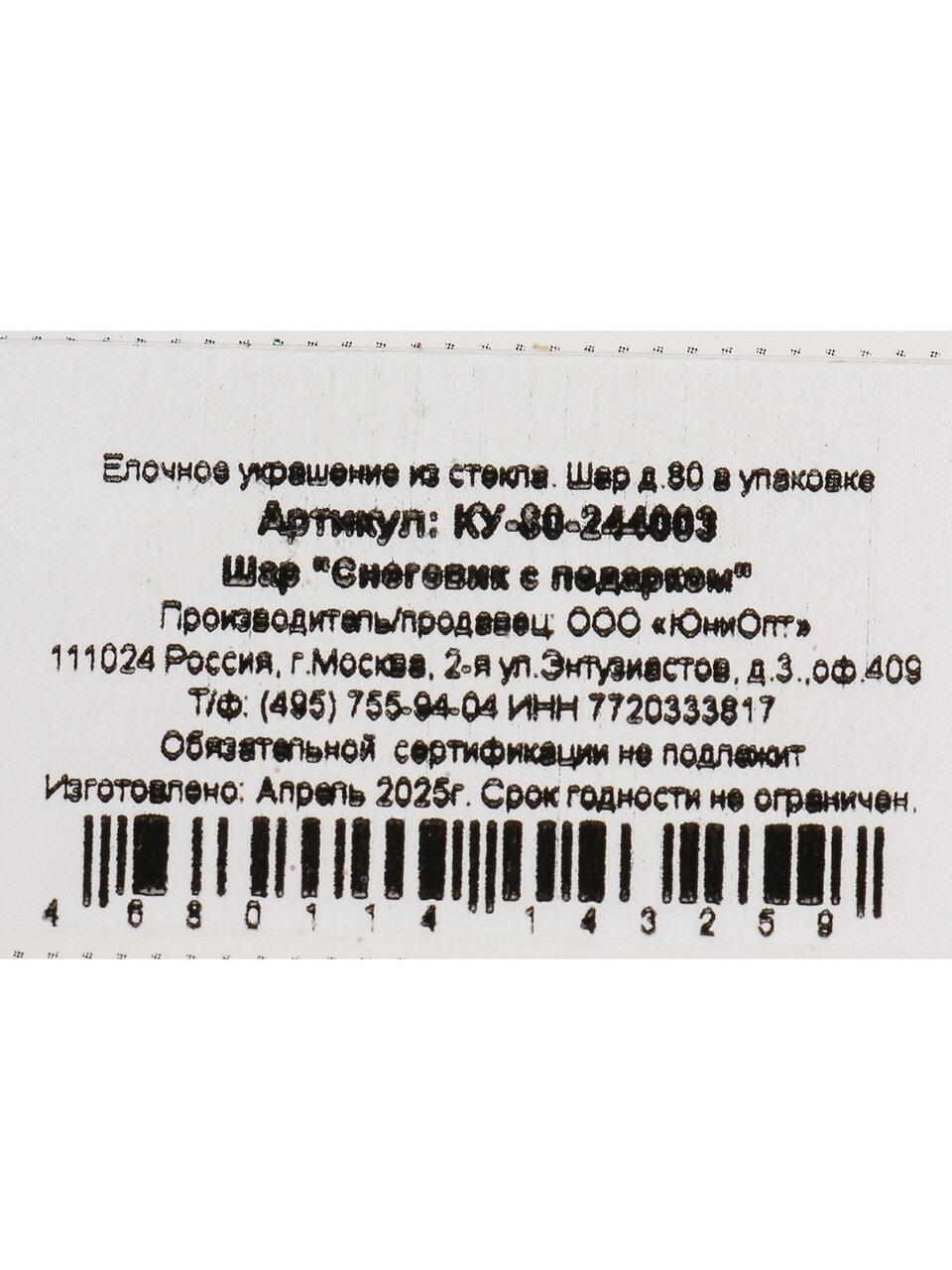 Вы можете приобрести «Елочный шар Снеговик с подарком, 8 см, стекло, КУ-80-244003» и другие товары в нашем интернет-магазине в Санкт-Петербургe по низким ценам и с бесплатным самовывозом.