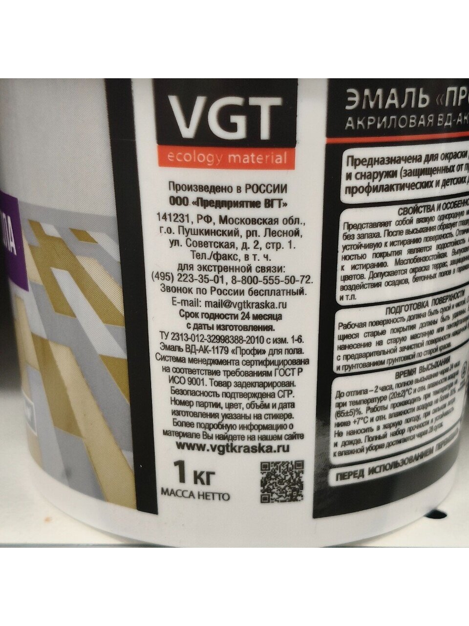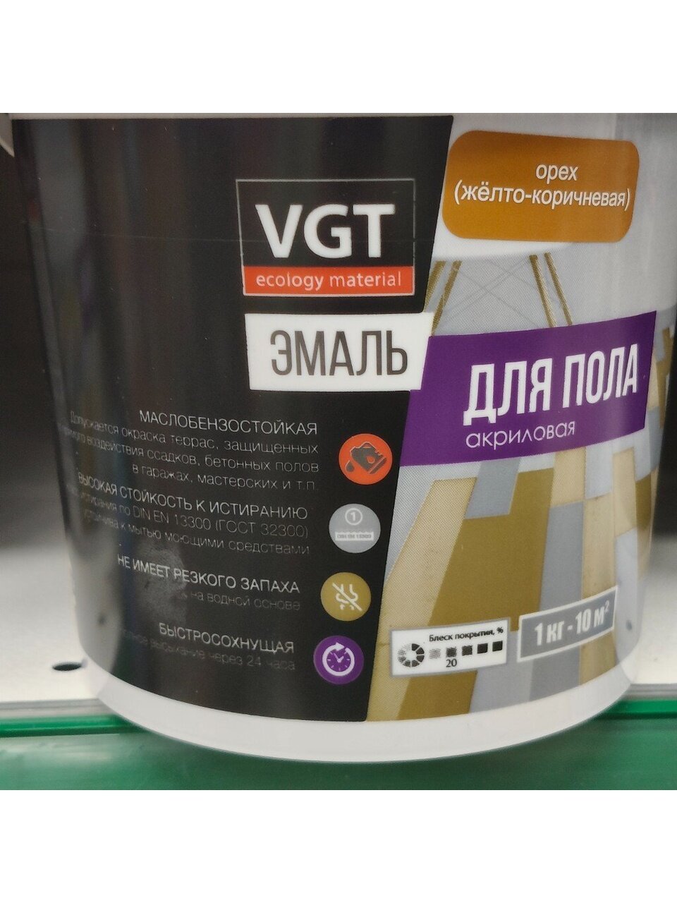 Вы можете приобрести «Эмаль VGT, ВД-АК-1179, для пола, акриловая, полуматовая, орех (желто-коричневый), 1 кг» и другие товары в нашем интернет-магазине в Борисоглебске по низким ценам и с бесплатным самовывозом.