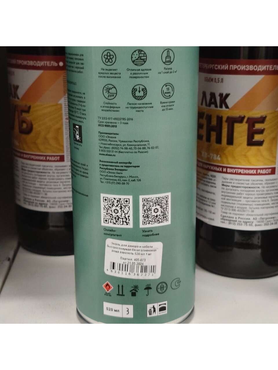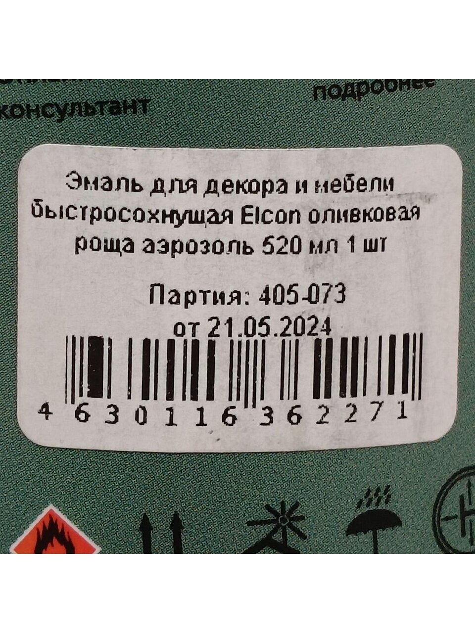 Вы можете приобрести «Эмаль аэрозольная, Elcon, декоративная, быстросохнущая, силикон-акриловая, матовая, оливковая роща, 520 мл» и другие товары в нашем интернет-магазине в Россоши по низким ценам и с бесплатным самовывозом.