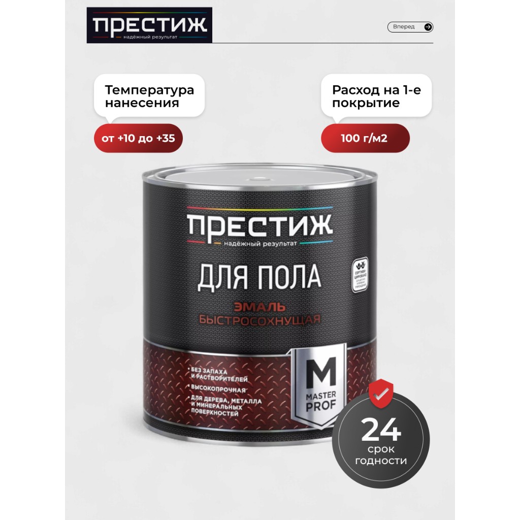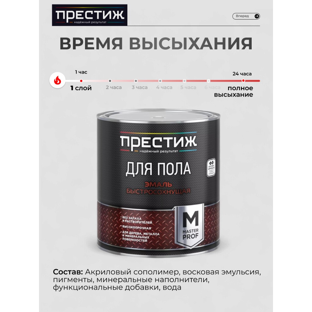 Вы можете приобрести «Эмаль Престиж, Мастер, для пола, быстросохнущая, акриловая, полуглянцевая, коричневая, 2.8 кг» и другие товары в нашем интернет-магазине в Санкт-Петербургe по низким ценам и с бесплатным самовывозом.