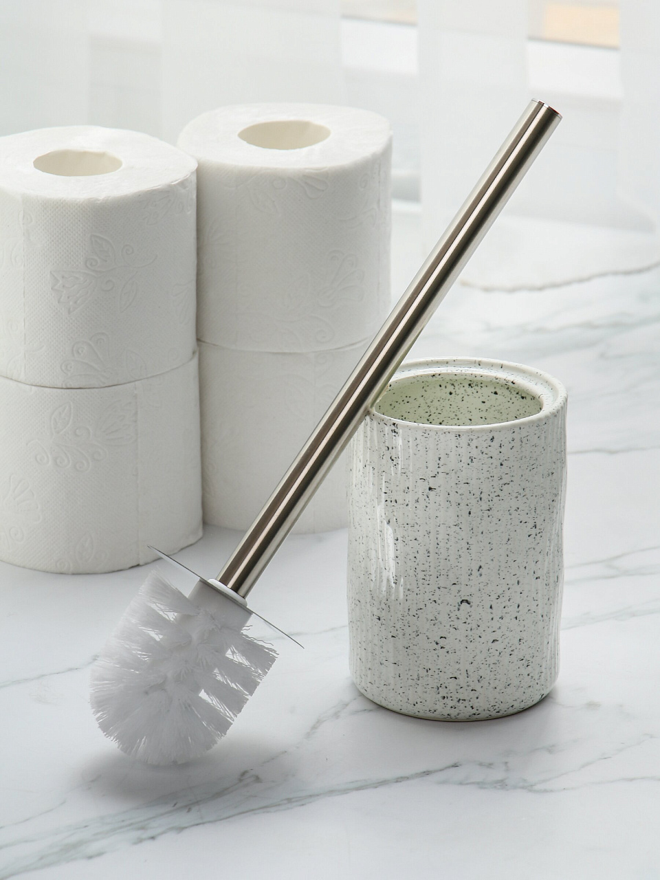 Как использовать напольный ерш? Просто разместите его рядом с унитазом — благодаря устойчивой форме он не скользит по плитке, а плотная щетина обеспечивает эффективную очистку без риска царапин. Подходит ли такой ерш для подарка? Да, благодаря стильному дизайну и универсальному цвету, этот аксессуар станет практичным и уместным презентом для новоселья или обустройства загородного дома. В отличие от моделей из пластика или металла, керамика не впитывает запахи и проста в уходе — достаточно промывать теплой водой.