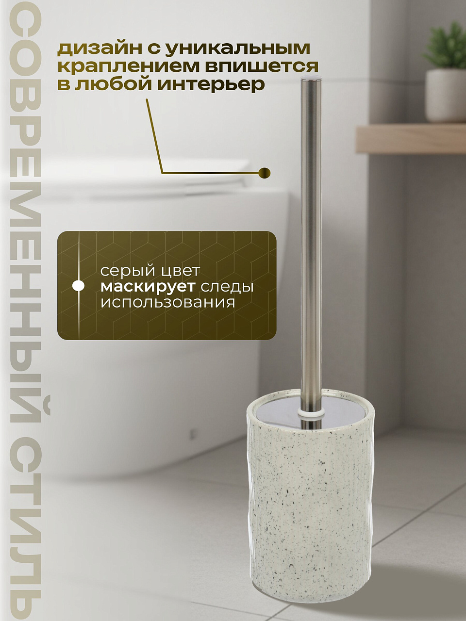 Напольный ерш для туалета Y4-9851 — это оптимальный выбор для тех, кто ищет сочетание эстетики и функциональности. Керамическая основа не только устойчива к механическим воздействиям, но и не теряет цвет даже при частом использовании. Благодаря серому цвету с вкраплениями аксессуар гармонирует с современной плиткой и сантехникой. Если вы задаётесь вопросом, какой ерш лучше выбрать для ванной или туалета, обратите внимание на модели из керамики — они долговечнее пластиковых аналогов, устойчивы к влаге и не подвержены коррозии, что особенно важно для дачи или влажных помещений.