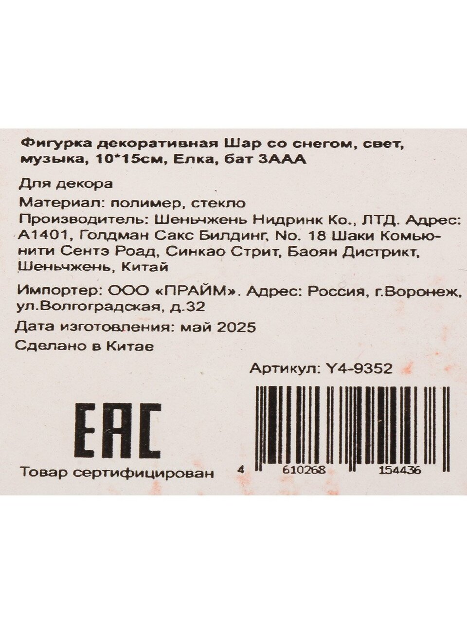 Вы можете приобрести «Фигурка декоративная Шар со снегом Елка, 10х10х15 см, свет, музыка, батарейки 3ААА, Y4-9352» и другие товары в нашем интернет-магазине в Тамбове по низким ценам и с бесплатным самовывозом.