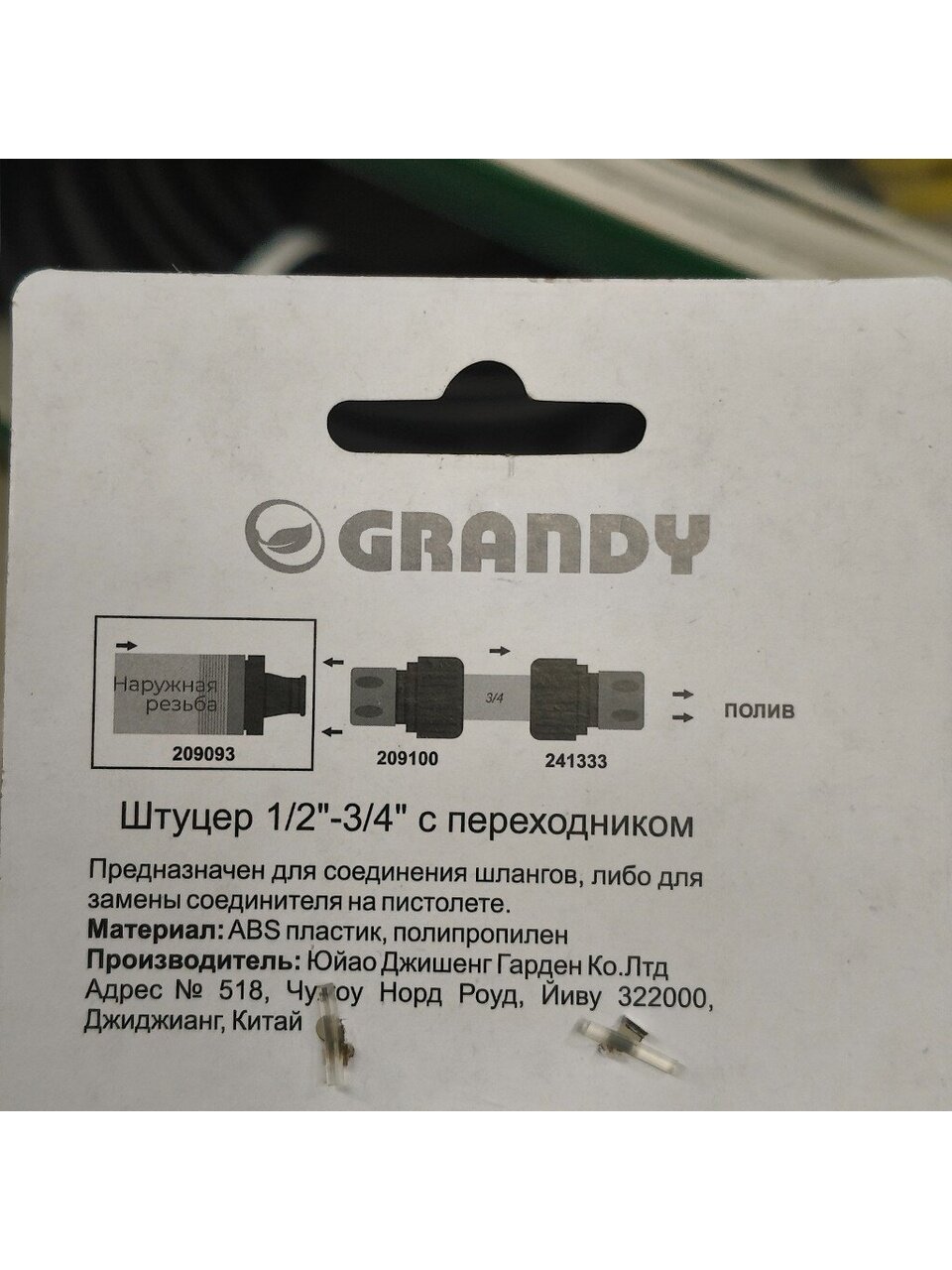 Штуцер на кран 1/2"-3/4", быстросъемный, наружная резьба, с переходником, Grandy, JS-320