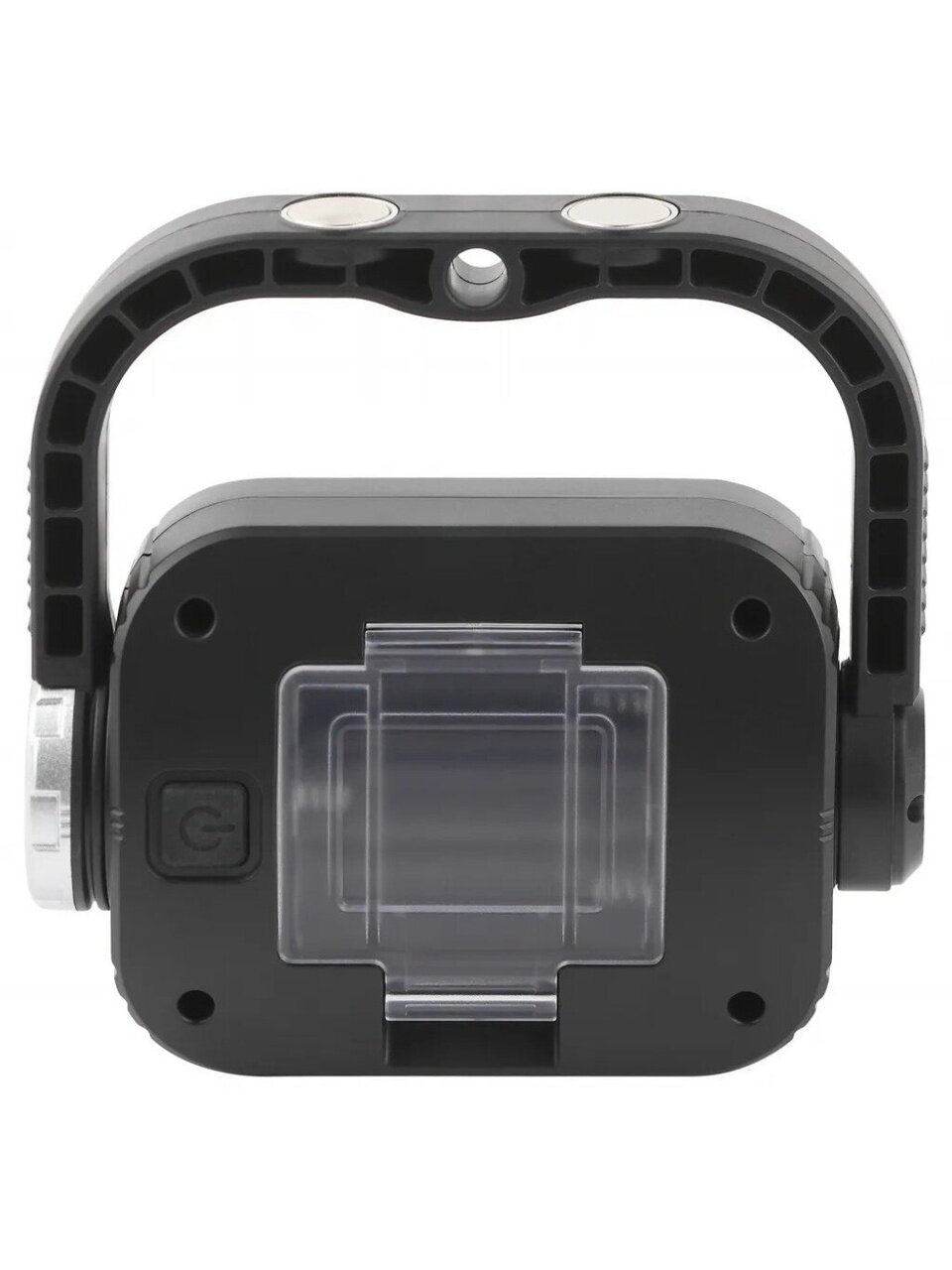 Ручка фонаря оснащена двумя мощными магнитами, которые позволяют закрепить фонарь на любой металлической поверхности. Дополнительной особенностью является то, что ручку возможно поворачивать на все 360 градусов без ограничений.