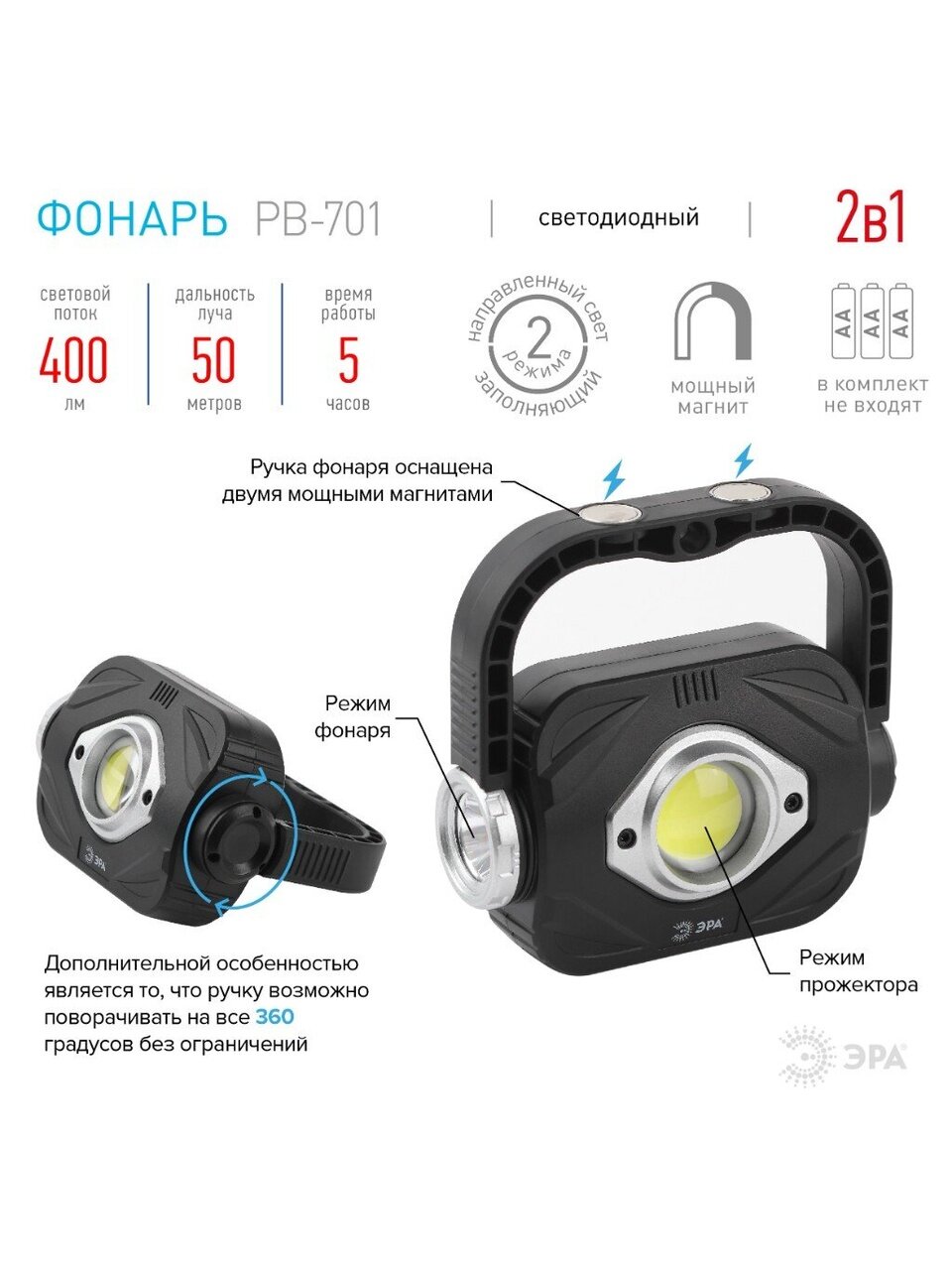 Вы можете приобрести «Фонарь ручной, Эра, ЭРА PB-701, пластик, с ручкой на магните, 3 Вт, Б0052316» и другие товары в нашем интернет-магазине в Липецке по низким ценам и с бесплатным самовывозом.