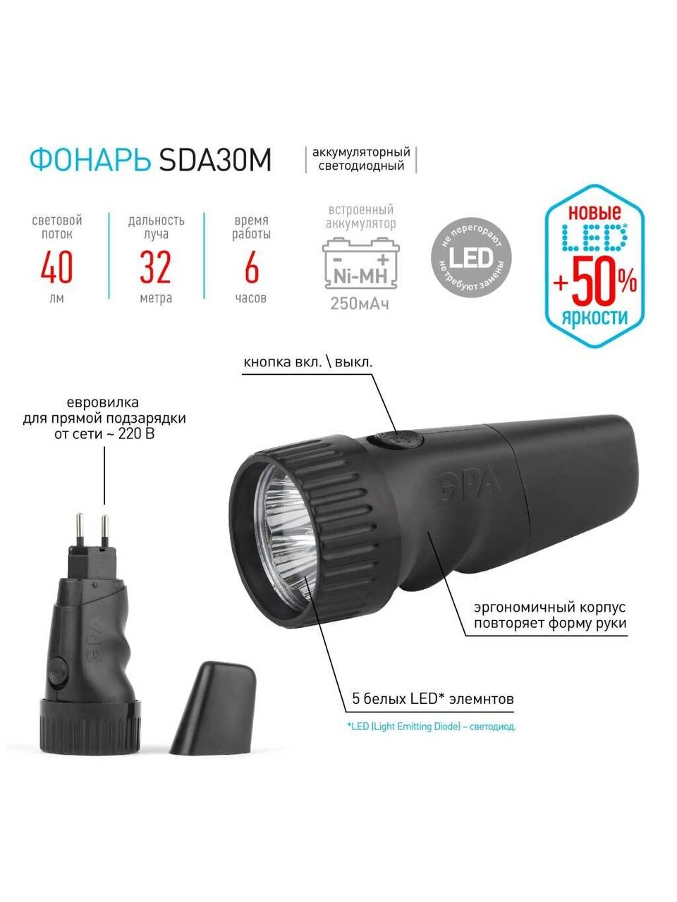 Вы можете приобрести «Фонарь ручной, встроенный аккумулятор, Эра, SDA30M, зарядка от сети 220 В, пластик, Б0020022» и другие товары в нашем интернет-магазине в Тамбове по низким ценам и с бесплатным самовывозом.