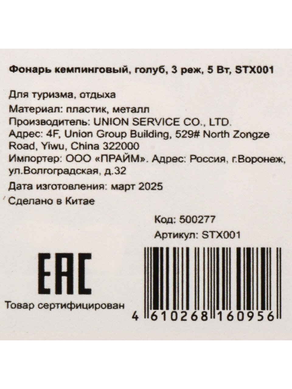 Вы можете приобрести «Фонарь кемпинговый, металл, пластик, голубой, 3 режима, 5 Вт, STX001» и другие товары в нашем интернет-магазине в Санкт-Петербургe по низким ценам и с бесплатным самовывозом.