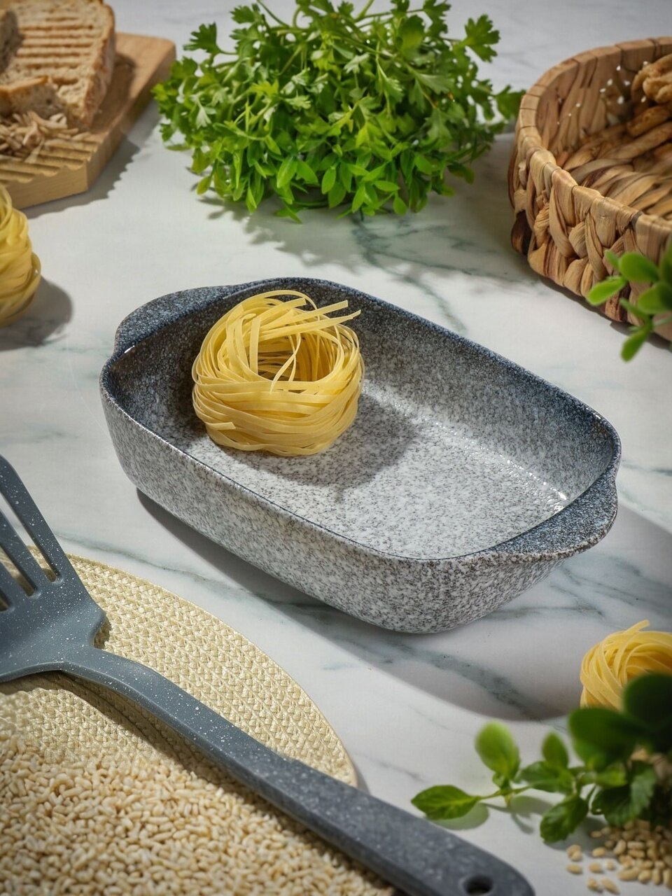 Форма для запекания из коллекции Daniks Гранит — это современное решение для тех, кто ищет, какую форму выбрать для духовки или микроволновки. Керамика обеспечивает равномерное распределение тепла, благодаря чему блюда не пересушиваются и сохраняют сочность. Серо-синий цвет гармонично впишется в любой интерьер кухни, а прямоугольная форма удобна для приготовления запеканок, курицы, рыбы или пирогов. Если вы ищете, что лучше для запекания небольших порций или хотите купить недорого форму для дачи, обратите внимание на этот вариант.
