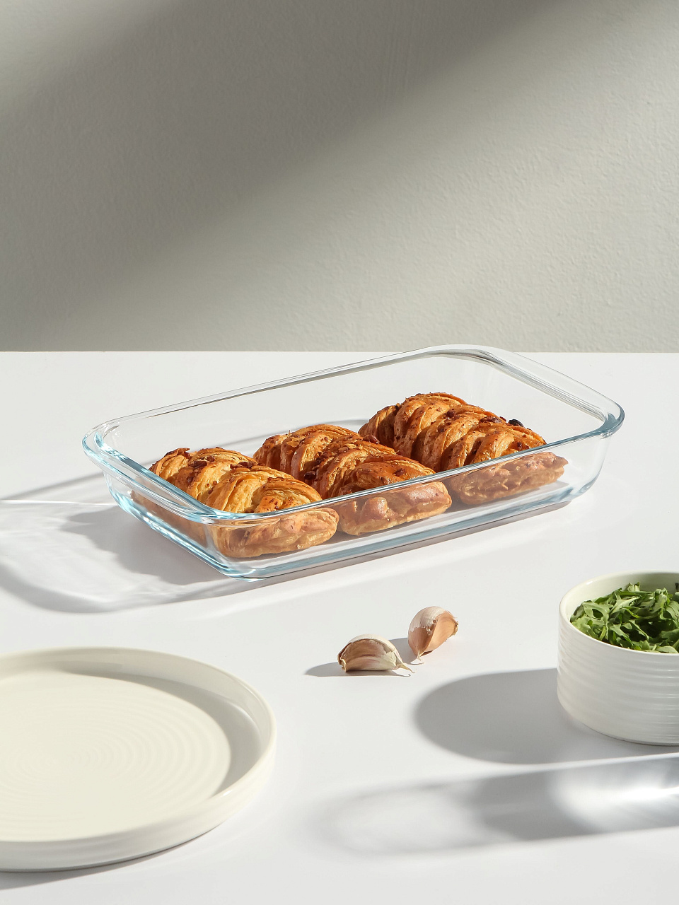 Форма для запекания из жаропрочного стекла 1.6 л: удобно готовить мясо, рыбу, овощи и пироги для всей семьи. Прозрачность — контроль готовности, ручки — лёгкость использования.